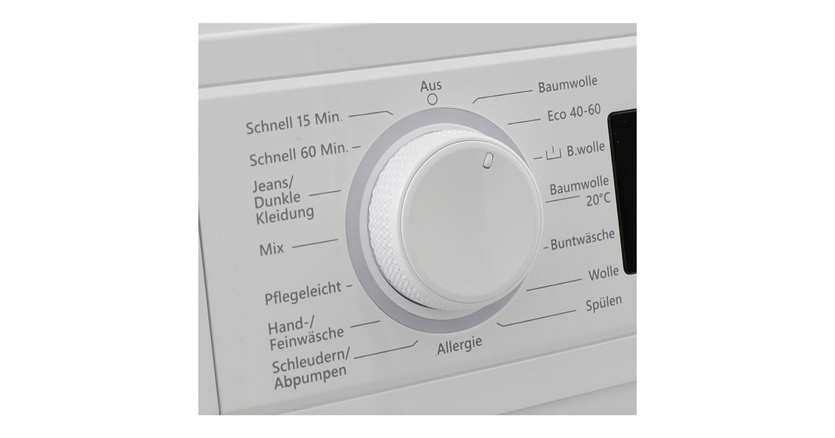 15 Programme: Eco 40- 60 °C, Baumwolle mit Vorwäsche, Baumwolle 90°C, Baumwolle 60°C, Baumwolle 20 °C, Buntwäsche 40°C, Pflegeleicht (Synthetik), Wolle, Spülen, Mix, Schleudern, Hand-/ Feinwäsche, Blusen/Hemden, Schnell 60 Min, Schnell 15 Min |