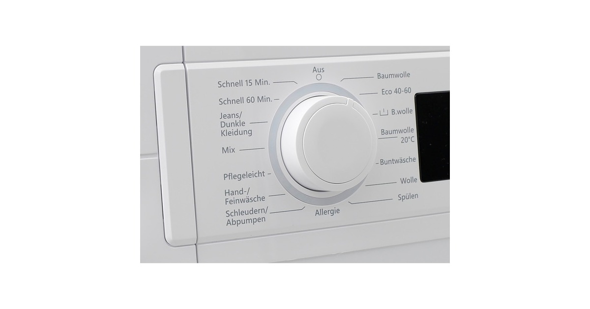 15 Programme: Eco 40- 60 °C, Baumwolle mit Vorwäsche, Baumwolle, Baumwolle 20 °C, Buntwäsche 40°C, Wolle, Spülen, Mix, Allergie, Schleudern/Abpumpen, Hand-/ Feinwäsche, Jeans, Pflegeleicht, Schnell 60 Min, Schnell 15 Min |
