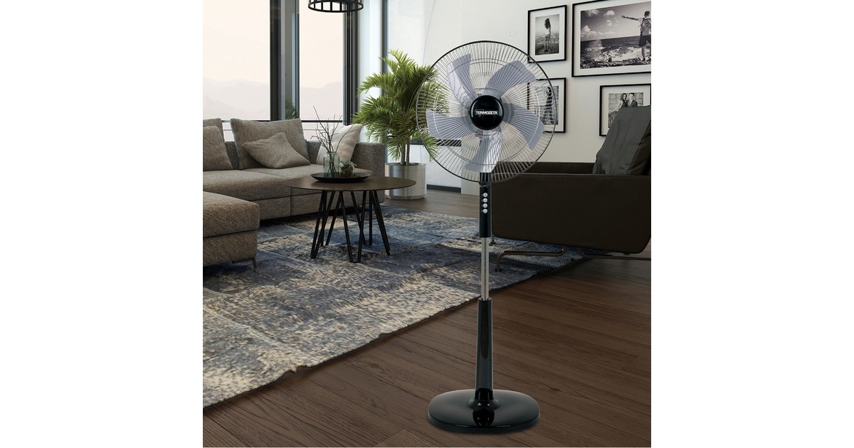 Der Airzetta Standventilator von Termozeta sorgt mit seinen fünf aerodynamisch geformten, Ventilatorflügeln für schnelle Abkühlung. Dank der Schwenkfunktion kann der Ventilator den ganzen Raum kühlen. Er bietet 3 Leistungsstufen.Art.-Nr.: 1472160