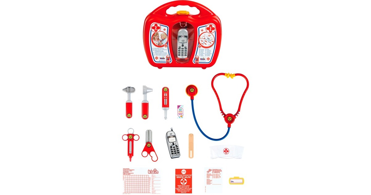Doktorkoffer für Jungen und Mädchen mit zahlreichem Zubehör, z.B. batteriebetriebenes Spielzeug-Handy mit realistischen Funktionen und Tönen, Stethoskop und vieles mehr.Art.-Nr.: 1273379