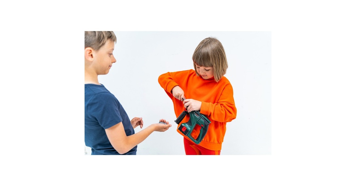 BOSCH Schlagbohrmaschine, realitätsgetreue Nachbildung mit kindgerechten Funktionen, Rechts-/Linkslauf, Schnell- /Langsamlauf, auswechselbare Aufsätze, batteriebetrieben (3x AAA).Art.-Nr.: 1273264