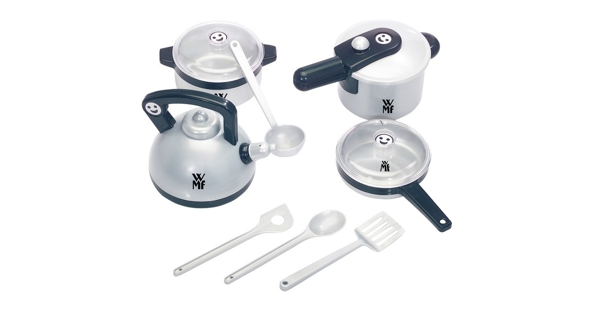 WMF Topfsortiment mit Schnellkochtopf, Flötenkessel und weiterem Zubehör.Art.-Nr.: 1273402