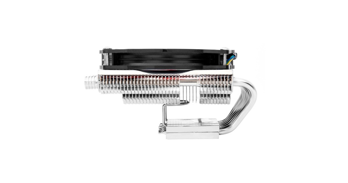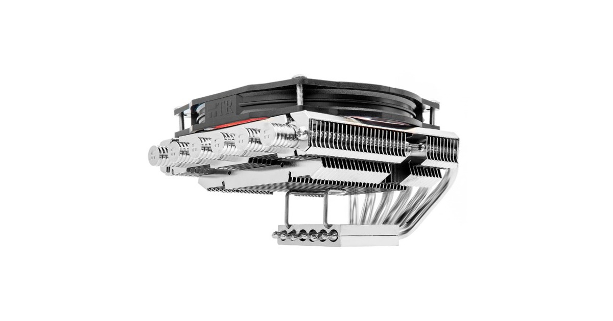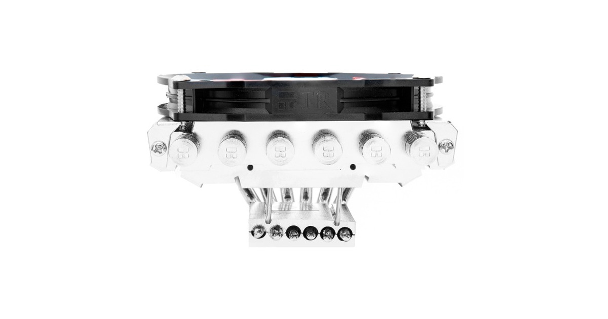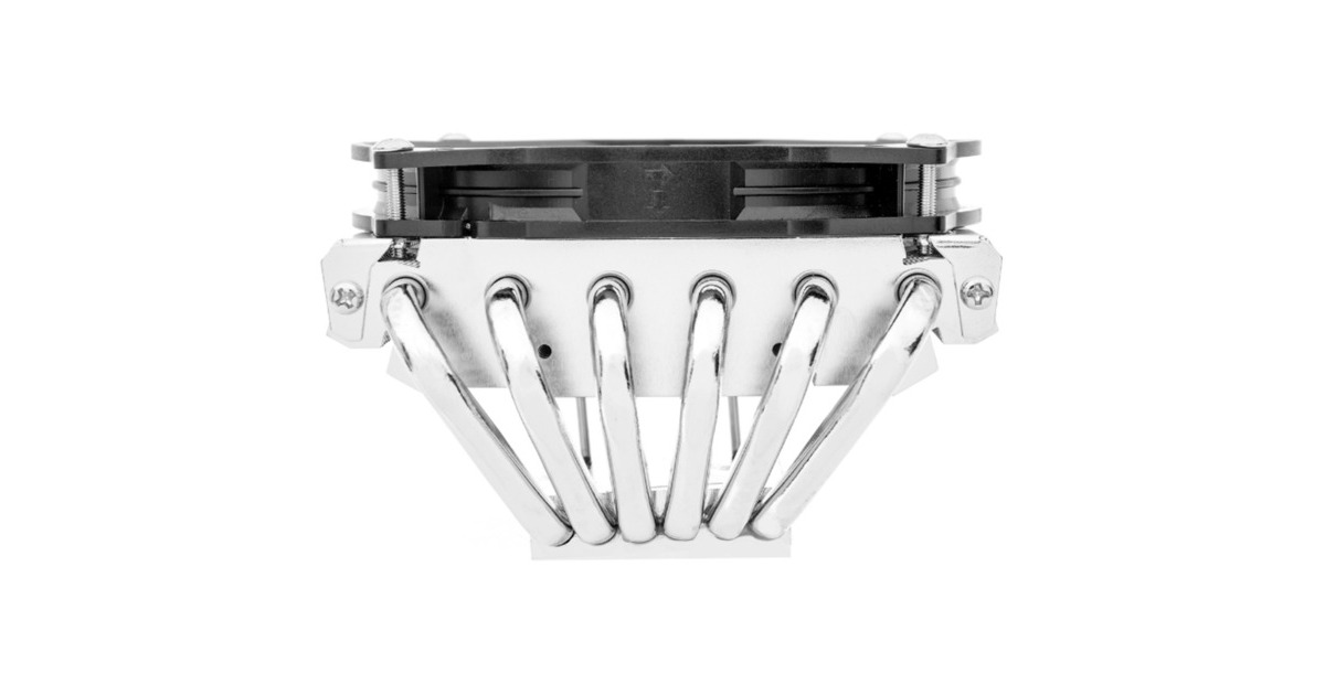 Mit dem AXP-100RH präsentiert Thermalright eine leicht überarbeitete Version des kompakten HTPC-Kühlers. Die leicht erhöhte Bauhöhe gewährleistet, dass der Kühler auch auf die aktuellen Modelle der Mini-ITX Mainboards passt, ohne mit Spannungswandlern oder RAM zu kollidieren. Merkmal dieses Kühlers ist die flache Bauhöhe von gerade einmal 51 mm (bzw. 65 mm inklusive Lüfter). So ist der AXP-100RH weiterhin eine gute Wahl, wo möglichst kompakte Abmessungen besonders wichtig sind. Für Heimkino-/Multimedia-Systeme mit geringer Gehäusehöhe ist der AXP 100RH daher perfekt geeignet. Der AXP-100RH verwendet das intelligente T-förmige "Down Draft" Kühlerdesign, welches den Luftstrom senkrecht auf das Mainboard leitet und somit auch die umliegenden Bauteile kühlt. Auf diese Weise werden im Idealfall Spannungswandler, Arbeitsspeicher und Chipsatz wirksam mitgekühlt. Insgesamt verfügt der AXP-100RH über gleich sechs vernickelte 6 mm Heatpipes, die fest mit der Kupfergrundplatte verlötet sind, um eine möglichst effektive Wärmeableitung zu erzielen. Das spezielle Design der 40 Aluminium-Lamellen dient der Minimierung des Luftwiderstands und trägt effektiv zu einer besonders wirkungsvollen Temperatursenkung bei. Das serienmäßige „Enhanced Fan Mount“ Bracket erlaubt eine höchstmögliche Flexibilität bei der Lüftermontage, um die geringen Platzverhältnisse in HTPC-Gehäusen möglichst optimal ausnutzen zu können. Das Bracket kann in 90° Schritten gedreht montiert werden. Die Montagelöcher des Rahmens auf dem Kühler sind schlitzförmig, was ein Verschieben des Lüfters um ca. 15 mm in horizontaler oder vertikaler Richtung - abhängig von der Ausrichtung des Fan Mounts - erlaubt.Art.-Nr.: 100034533| AbmessungenFan1 | Anzahl: 1 Stück, Breite: 101 mm, Höhe: 108 mm, Tiefe: 14 mm |