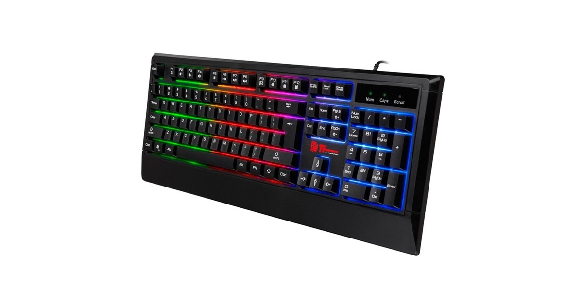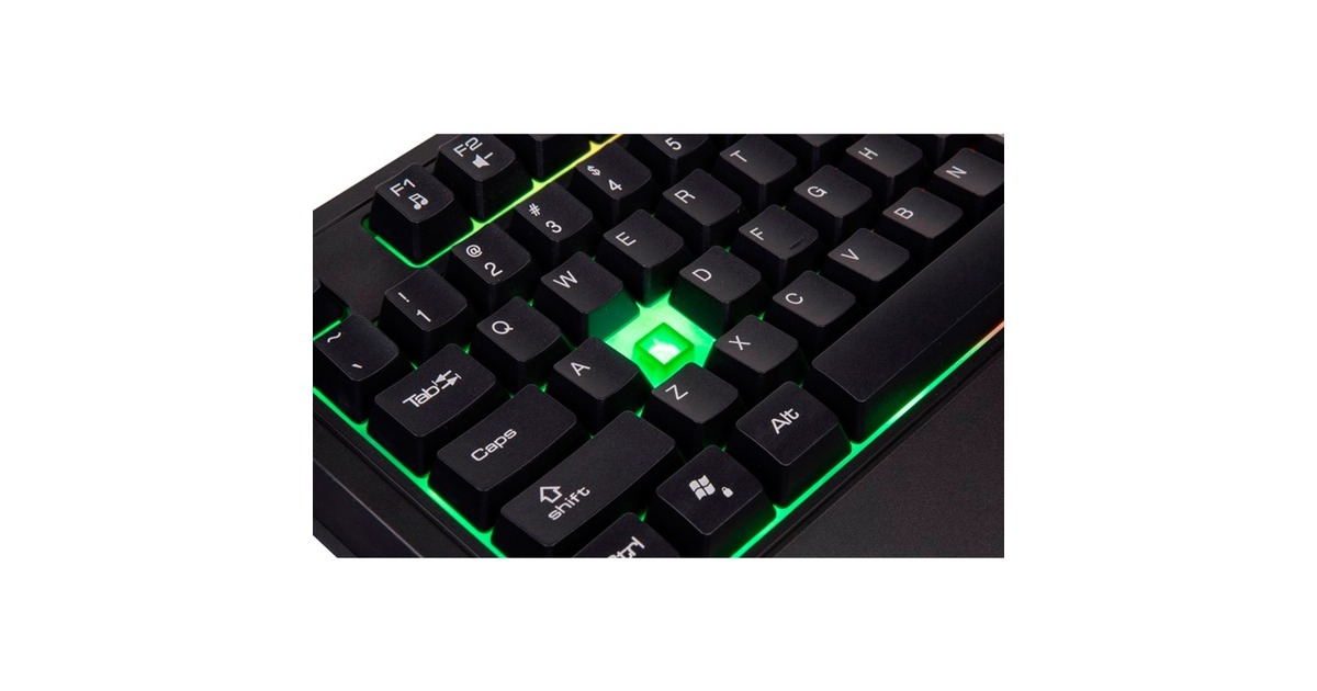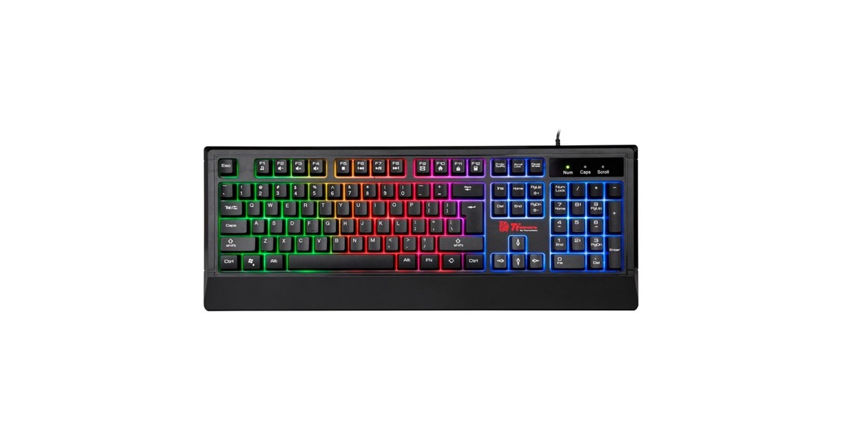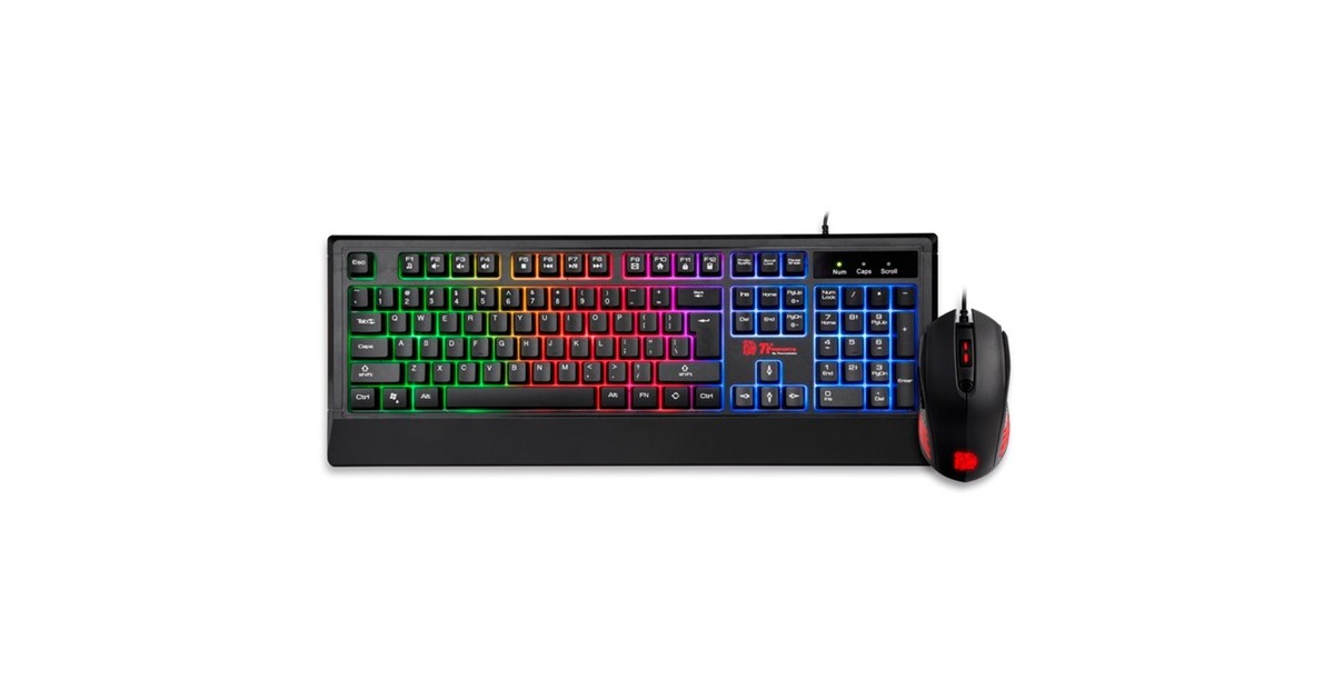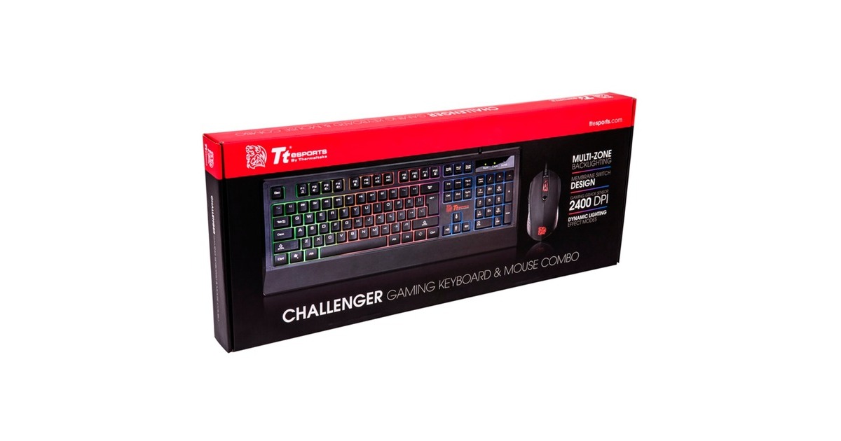 Das Desktop-Set Thermaltake Challenger Combo RGB besteht aus einer Gaming-Tastatur und Maus. Die Tastatur verfügt über eine RGB-Hintergrundbeleuchtung mit statischen und pulsierenden Lichteffekten, die über die RGB-Steuerung eingestellt werden können. Die Membran-Rubber-Tasten haben eine Lebensdauer von bis zu 5 Millionen Klicks und überzeugen mit Anti-Ghosting und 24-Key-Rollover. Bei der optischen Maus des Challenger Combo RGB kann die Auflösung zwischen 800, 1200, 1600 und 2400 dpi umgeschaltet werden. Ihre Tasten haben eine Lebensdauer von 10 Millionen Klicks und dank LED-Beleuchtung erstrahlt die Maus in blau, pink, rot oder lila. Sie ist ergonomisch für Links- und Rechtshänder geformt und bietet mit sechs Tasten ausreichend Eingabemöglichkeiten im virtuellen Gefecht.Art.-Nr.: 1497190