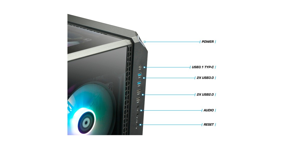 2x USB-A 2.0, 4x USB-A 3.2 (5 Gbit/s), 3x USB-A 3.2 (10 Gbit/s), 1x USB-C 3.2 (10 Gbit/s) |