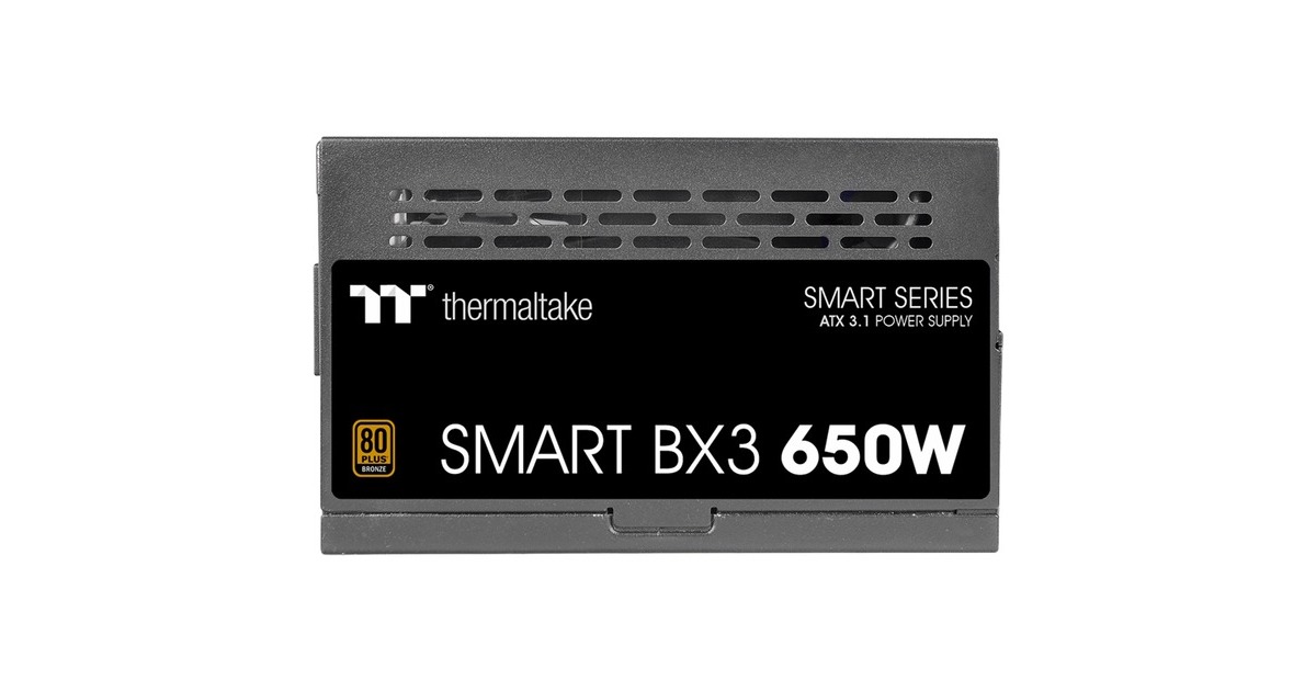 Das PC-Netzteil Thermaltake SMART BX3 650W unterstützt den ATX 3.1 Standard und Intel Deep Power Down C6/C7 Status. Das SMART BX3 650W besitzt einen Wirkungsgrad von bis zu 85% und ist 80 PLUS Bronze zertifiziert. Das Netzteil besitzt schwarze flache Low Profile-Kabel und wurde mit hochqualitativen Kondensatoren gefertigt. Art.-Nr.: 100045669