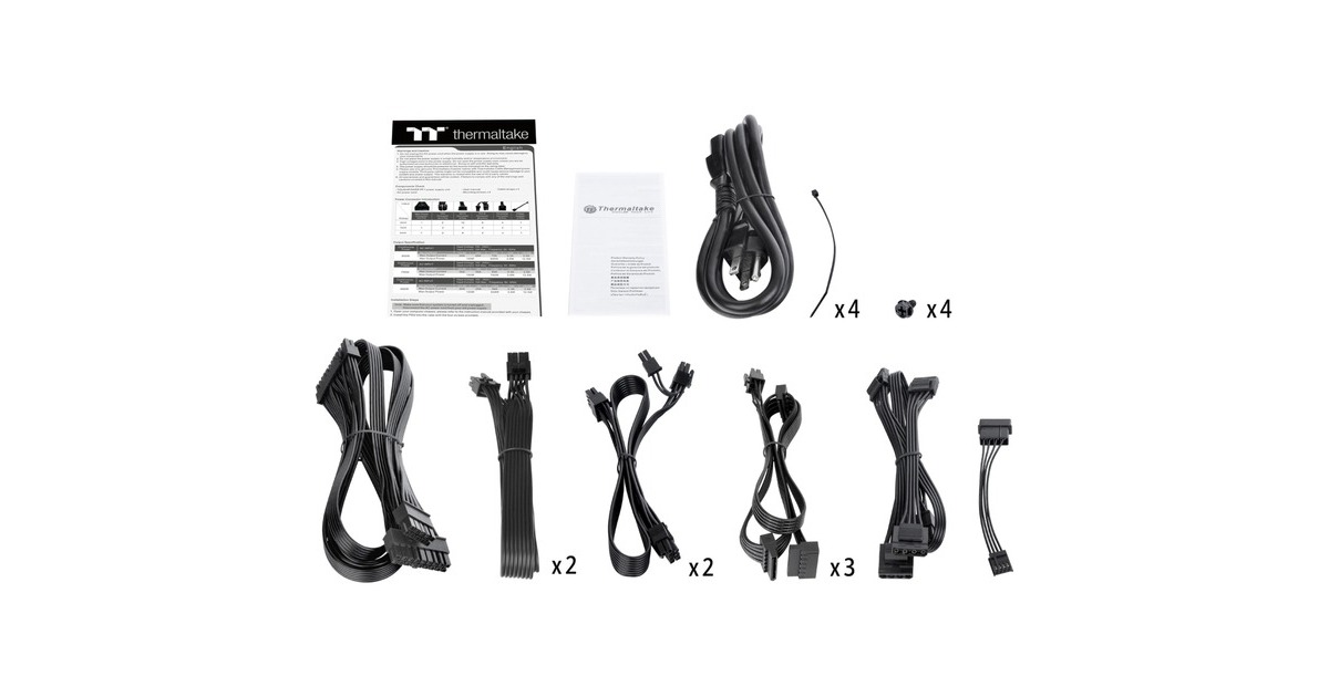 1x 24-Pin-ATX12V-2.x, 2x 4+4-Pin-12V, 4x 4-Pin-5,25", 4x 6+2-Pin-Grafik, 9x 15-Pin-SATA |