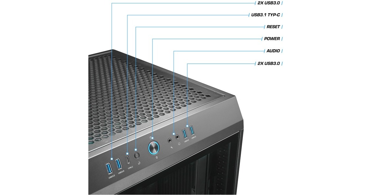 2x USB-A 2.0, 2x USB-A 3.2 (5 Gbit/s), 1x USB-A 3.2 (10 Gbit/s), 1x USB-C 3.2 (20 Gbit/s) |
