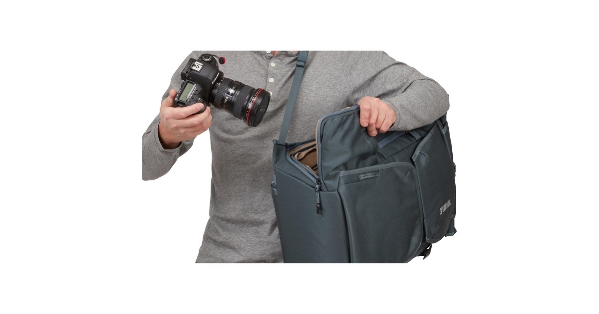Der Covert DSLR 32L von Thule ist ein robuster und vielseitiger 3-in-1-Rucksack mit herausnehmbarem Kamerafach und einer voll anpassbaren Innenaufteilung für den Allroundeinsatz. Ein praktischer seitlicher Zugang erleichtert den Zugriff auf Kamera und Fotoausrüstung. Das gepolsterte Kamerafach lässt sich einfach entnehmen, so dass sich der Rucksack auch problemlos als Daypack für Reisen nutzen lässt. Das Kamerafach selbst kann auch als Sling- oder Schultertasche getragen werden. Die Innenaufteilung lässt sich dank Reißverschluss komplett entfernen und in der Netztasche verstauen, um das Fach als Ganzes zu nutzen. Auch ein 39,6 cm (15,6“) Notebook und ein 27,9 cm (11“) Tablet findet in einem Fach an der Rückseite Platz. Die magnetischen Vorderfächer verfügen zur Sicherheit über einen Reißverschluss und bieten große, überlappende Netzfächer.Art.-Nr.: 1736298