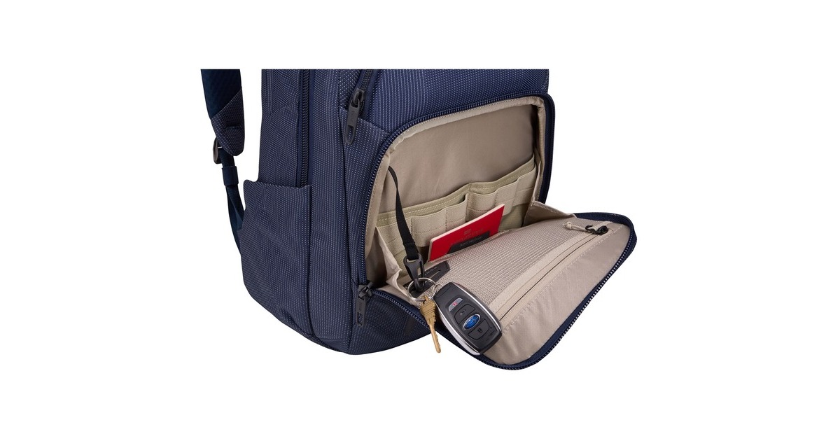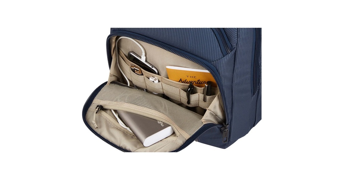 Frontfach, Utensilienfach, Trinkflaschenhalter, RFID Schutzfach, leicht zugängliches und druckbeständiges "SafeZone"-Fach, Organisationsmöglichkeit für Kleinteile mit der Einschubtasche an der Vorderseite, elastischen Schlaufen, in der Netztasche mit Reißverschluss und mit dem Kabelmanagementsystem, separate Aufbewahrungshülle mit weichem Innenfutter für ein Tablet, verstärkte Seitentaschen |