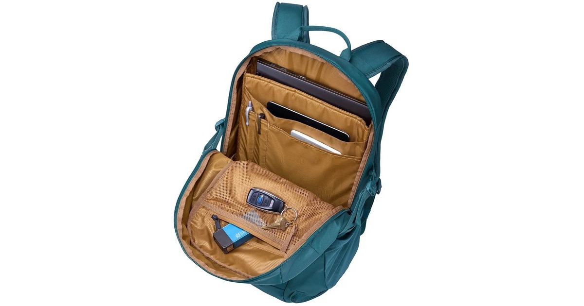 Der EnRoute Rucksack 21L von Thule bietet flexible Aufbewahrung für mobile Geräte wie Laptop, ein Tablet und weiteres Zubehör. Dieser Rucksack verfügt über genug Platz für ein Notebook bis 39,6 cm (15,6") und hat eine Unterbringungsmöglichkeit für eine Wasserflasche. Sein Tragesystem sorgt mit einer effektiven Belüftung und Brustgurt für hohen Tragekomfort. Über eine praktische Trolleyschlaufe lässt er sich auch an einem Rollkoffer befestigen.Art.-Nr.: 1853171