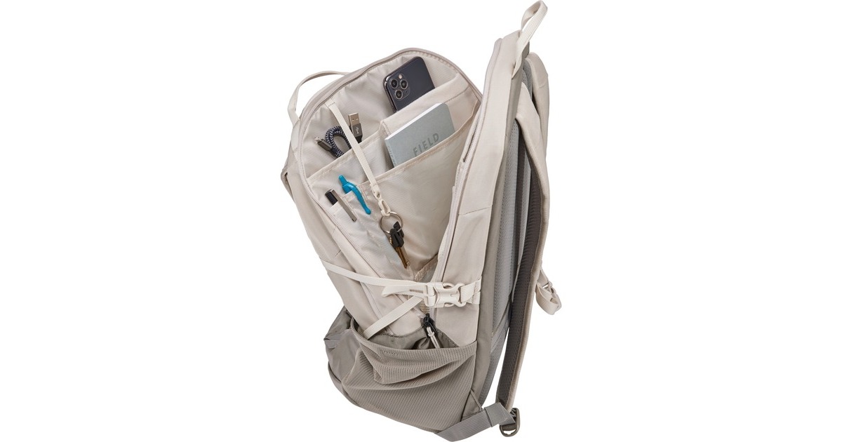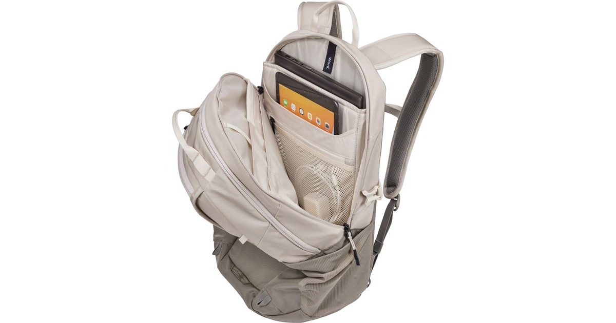Der EnRoute Rucksack 26L von Thule bietet flexible Aufbewahrung für mobile Geräte wie Laptop, ein Tablet und weiteres Zubehör. Dieser Rucksack verfügt über genug Platz für ein Notebook bis 39,6 cm (15,6") und hat eine Unterbringungsmöglichkeit für eine Wasserflasche. Sein Tragesystem sorgt mit einer effektiven Belüftung und Brustgurt für hohen Tragekomfort. Über eine praktische Trolleyschlaufe lässt er sich auch an einem Rollkoffer befestigen. Eine wasserfeste TPU-Tasche schützt Kleinteile, die nicht nass werden dürfen.Art.-Nr.: 1853180