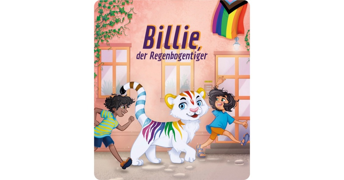 Mit dieser Figur kommt das bunte Leben auf die Toniebox. Als die Kinder Shira und Bruno im Garten spielen, steht plötzlich ein Tiger vor ihnen - aber ein ganz besonderer: Billie, die Regenbogentatze kommt aus einer fantastischen Welt zu uns. Das Besondere an Billie sind die bunten Tigerstreifen, die magische Kräfte haben! Die setzt Billie gerne ein, um anderen zu helfen. Wie zum Beispiel Brunos Lieblingsonkel Timo, der mit seinem Mann Rafael ein Kind adoptieren möchte. Dabei geht jedoch so einiges schief und Billie wirbelt den Alltag der Kinder ganz schön durcheinander.