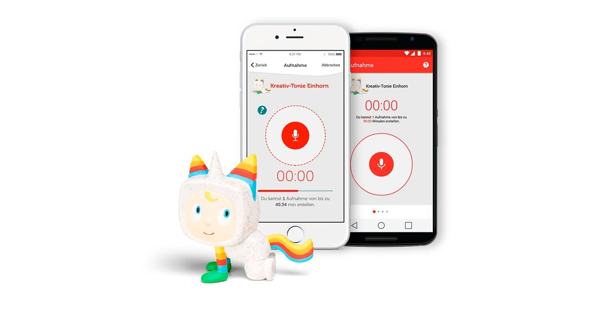 Das Einhorn hat seinen Platz endlich auch im Tonie-Universum gefunden. Der Kreativ-Tonie bietet 90 Minuten Aufnhame- und Abspielzeit. Über die kostenfreie Anwendung aus dem jeweiligen Store (Android, iOS) und das kostenlose Toniecloud-Kundenkonto, kann alles was das Herz begehrt aufgenommen und abgespielt werden: Geschichten, Lieder, Nachrichten oder andere Hörbücher und Abenteuer. Alles, was der Kreativ-Tonie erzählen soll wird im Toniecloud-Kundenkonto angezeigt.Art.-Nr.: 1452692