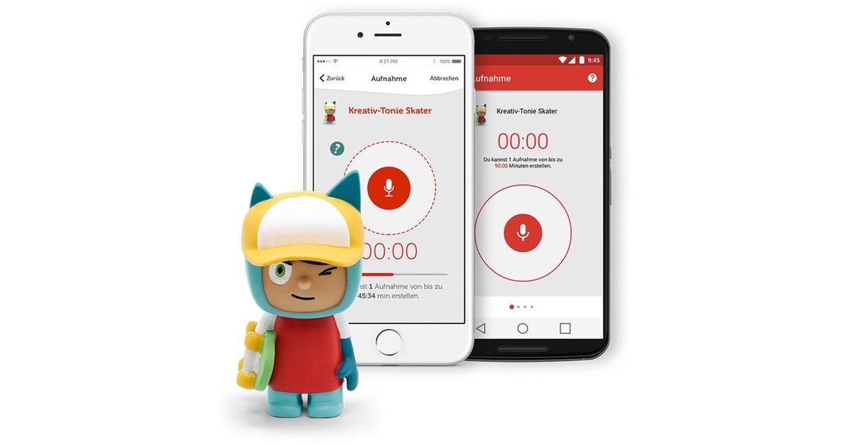 Bei Kreativ-Tonies handelt es sich um Spielfiguren, die gleichzeitig als Hörfigur dienen. Sie werden magnetisch auf die Toniebox gelegt und spielen eigene, aufgenommene Hörabenteuer ab. Um die Aufnahme-Funktion zu nutzen, ist ein kostenfreies Toniecloud-Kundenkonto erforderlich. |