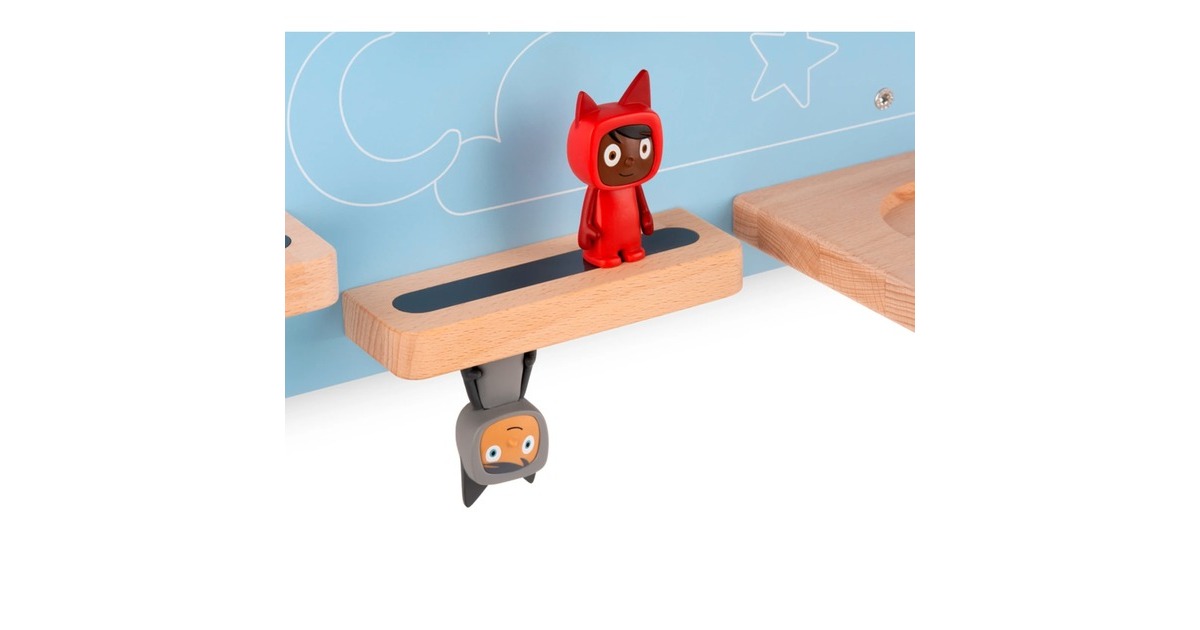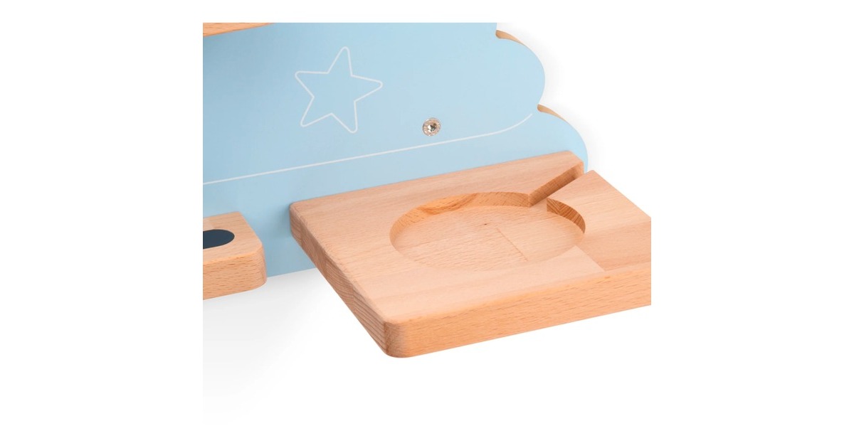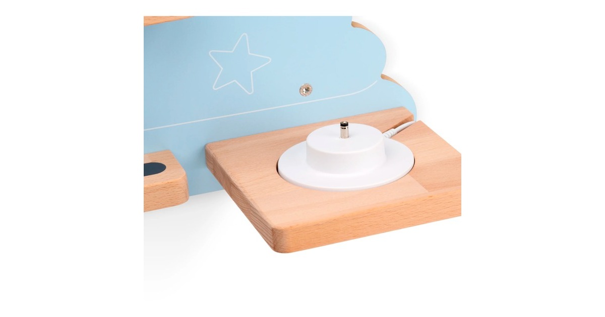 Das Tonie Regal "Auf der Traumwolke" in der Farbe Himmelblau ist die perfekte Bühne für die Tonie-Sammlung. Dabei ist es viel mehr als ein dekoratives Wandregal: Es ist eine moderne Bibliothek, die entworfen wurde, um die Lieblings-Tonies, die Toniebox und ihre Ladestation unterzubringen. Auf der himmelblauen Wolke ruhen die liebsten Einschlafhilfen wohl behütet, bevor sie ihren Besitzer ins Träumeland begleiten. Süße Motive aus der Tonie-Welt machen den bezaubernden Blickfang zum einzigartigen Hingucker in jedem Kinderzimmer. Bis zu 20 Tonies stehen oder hängen sicher auf den magnetischen Holzflächen. Die Toniebox hat ihren eigenen Platz mit Öffnung und Vertiefung für ihre Ladestation. Das Regal lässt sich schnell und einfach an der Wand montieren, die passenden Schrauben und Dübel sind dabei.Art.-Nr.: 1918276