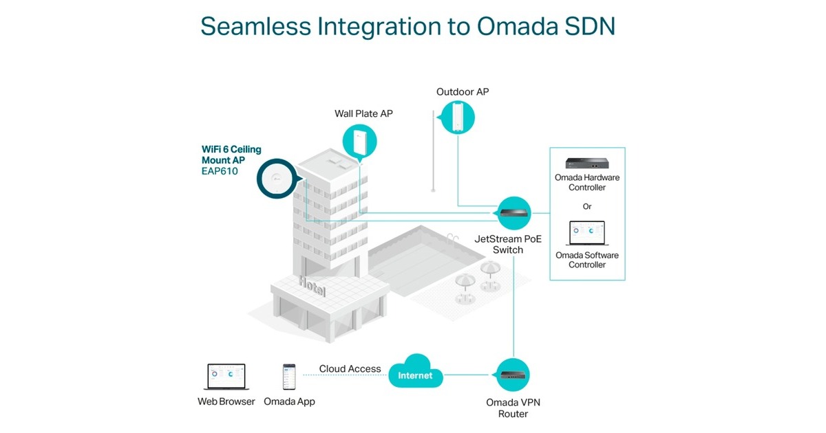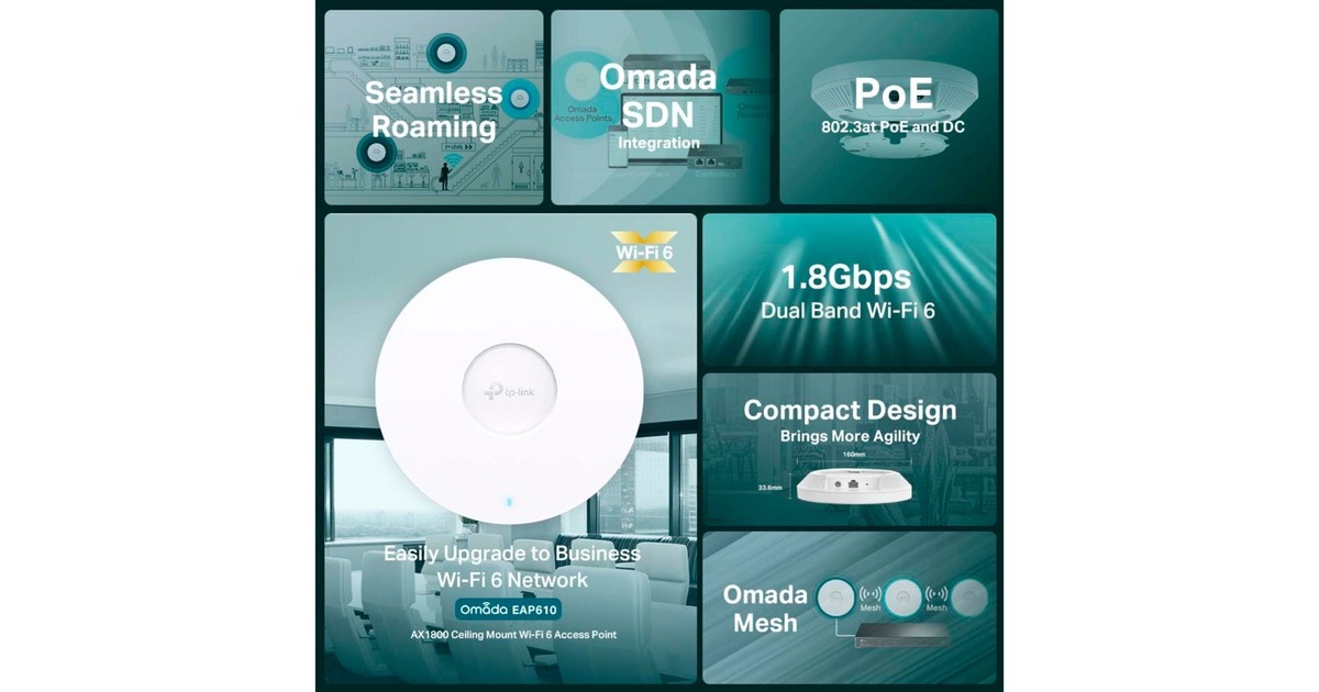 Der TP-Link EAP610 sorgt für schnelle WLAN mit 6 Geschwindigkeiten: Gleichzeitige 574 MBit/s auf 2,4 GHz und 1201 MBit/s auf 5 GHz sorgen für hohe WLAN-Geschwindigkeiten für viele Geräte. Das gesamte Netzwerk kann lokal oder aus der Cloud über die Web-Oberfläche oder die Omada-App gesteuert und kontrolliert werden.Art.-Nr.: 100004412