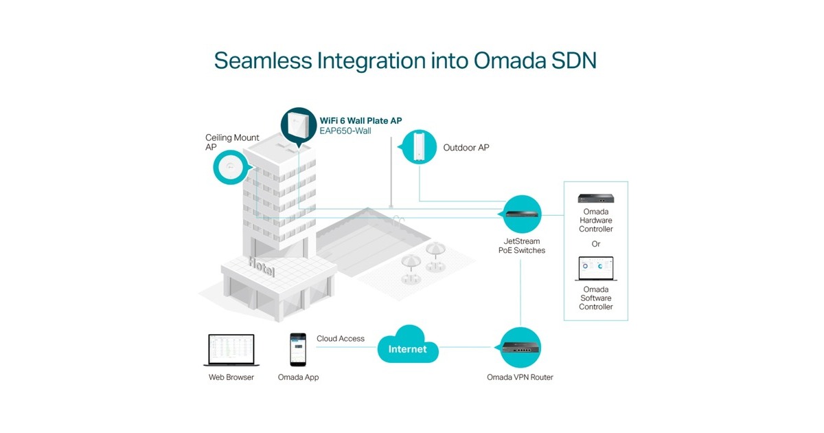 Der TP-Link EAP650-Wall sorgt für schnelles WLAN mit 6 Geschwindigkeiten: Gleichzeitige 574 MBit/s auf 2,4 GHz und 2402 MBit/s auf 5 GHz ergeben 2976 MBit/s WLAN-Geschwindigkeiten. Das Hocheffizientes Wi-Fi 6 sorgt für dafür das mehr verbundene Geräte, schnellere Geschwindigkeiten genießen können .Art.-Nr.: 100004389