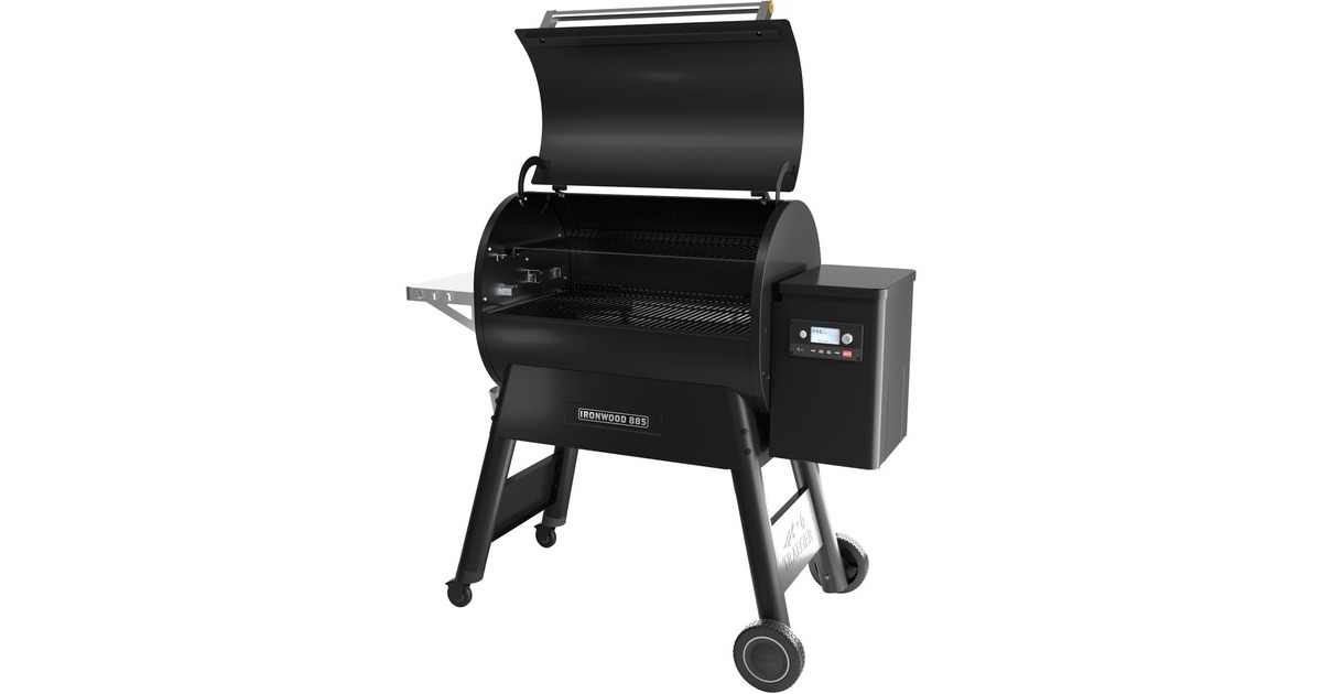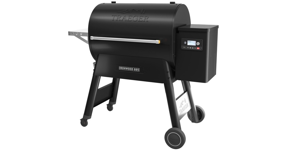 Der Ironwood 885 von Traeger ist für diejenigen gemacht, die die Messlatte für ihre Outdoor-Küche höher legen wollen. Dieser Titan eines Grills kann das gesamte Team problemlos versorgen, eine mit Holz angefeuerte Pizza backen, Hamburger und Bratkartoffeln oder 10 Hühnchen gleichzeitig mit einem zweistufigen, verstellbaren Grillrostsystem braten. Der Ironwood 885 hat mehr Leistung für mehr Geschmack dank eines völlig neuen D2 Direct Drive Antriebs. Der neue WiFIRE-Controller, der den Grill über die Traeger-App mit dem Smartphone (Android und iOS) verbindet, bietet eine ganz neue Art von Freiheit. Man kann den Super Smoke Modus einschalten, die Garraumtemperaturen ändern oder die Kerntemperatur der Speisen direkt vom Smartphone aus überwachen. Man kann auch Rezepte mit der GrillGuide-Technologie von Traeger direkt auf den Grill herunterladen, damit der Grill den gesamten Kochprozess selbst steuern kann. Mit dem neuen D2 Direct Drive Antrieb genießt man ein verbessertes Grillen und ein einfacheres Low&-Slow-Garen. TurboTemp liefert präzisere Gartemperaturen, während das perfekte Hartholzaroma in alles, was mit den Tru Convection und Downdraft Exhaust Systemen von Traeger gekocht wird, einfließt. Das Modell ist nun außerdem mit einem Pellet-Füllstandssensor ausgestattet.