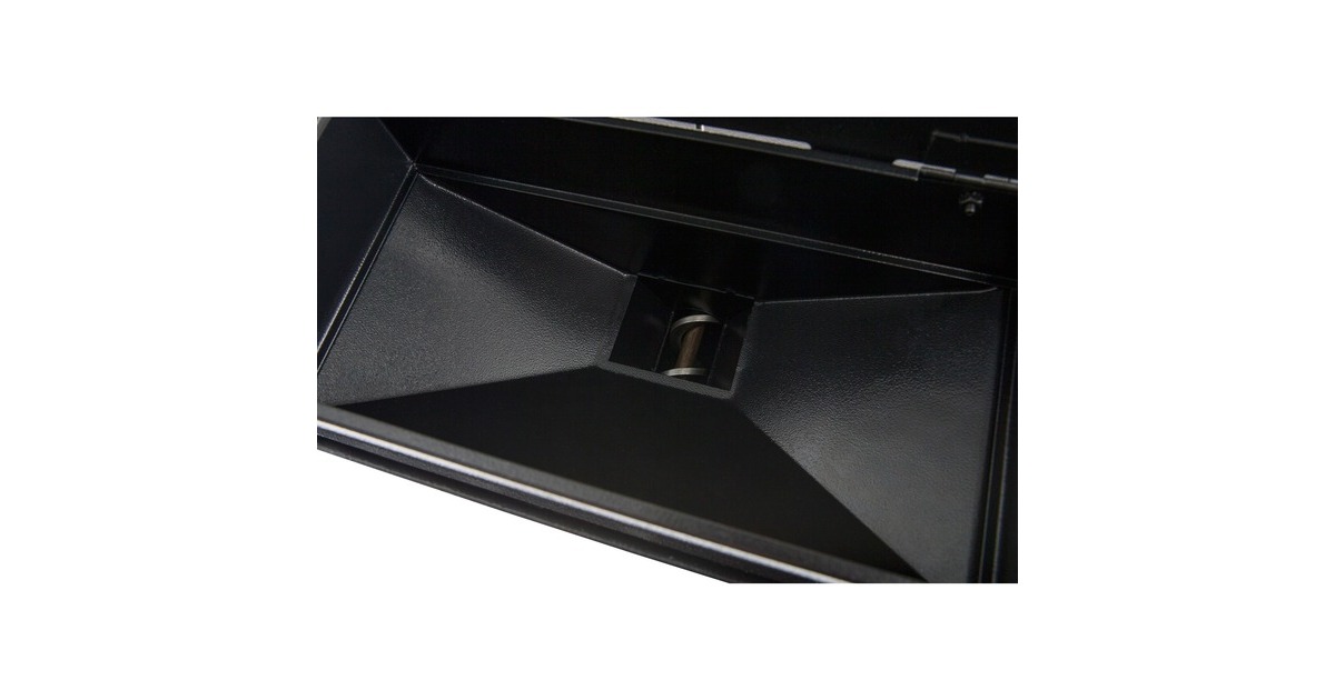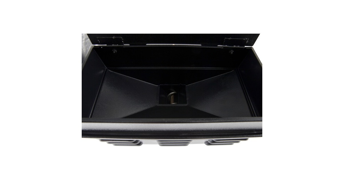 4 kurze Standfüße, mit Metallschließen verriegelbarer Deckel |