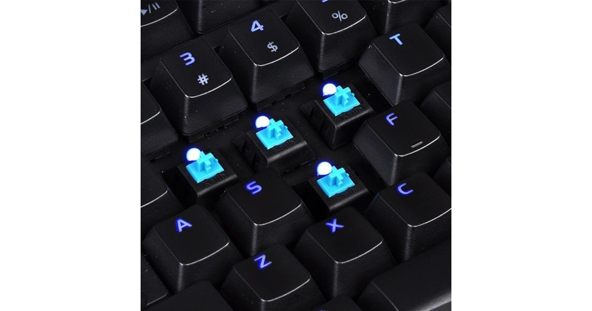 Full N-Key Rollover; blaue Hintergrundbeleuchtung (Intensität einstellbar) |