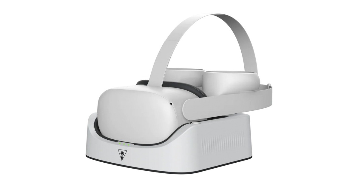 Die Turtle Beach Fuel Kompakte VR-Ladestation für Meta Quest 2 liefert zuverlässige, wiederaufladbare Energie für das Meta Quest 2 Virtual-Reality Headset und den Touch Controller. Zwei 1500-mAh-Akkus liefern jeweils bis zu 10 Stunden wiederaufladbare Energie und machen umweltschädliche Einwegbatterien überflüssig. Die geschlitzten Akkuabdeckungen an den Controllern und der mitgelieferte USB-C Magnetstift-Dongle für das Headset ermöglichen ein einfaches magnetisches Aufladen. Wenn man also auftanken muss, legt man das Headset und die Controller einfach in das Ladegerät und in ca. 2,5 Stunden ist man mit einem voll aufgeladenen Akku wieder einsatzbereit. Außerdem unterstützt die Fuel-VR-Ladestation die Schnellladefunktion, wenn man das USB-C-Stromkabel mit dem Meta Quest 2-Netzteil verbindet. Man behält den Ladestand mit der leicht ablesbaren Akkustandsanzeige im Auge. Gelbe Lichter zeigen an, dass der Ladevorgang läuft, und sobald das Licht grün wird, ist man startklar. Die kompakte Grundfläche der Station und die Kabellänge von 2 m sorgen dafür, dass das Setup übersichtlich und handlich bleibt, unabhängig davon, wo sich das VR-Setup befindet. Art.-Nr.: 1915166