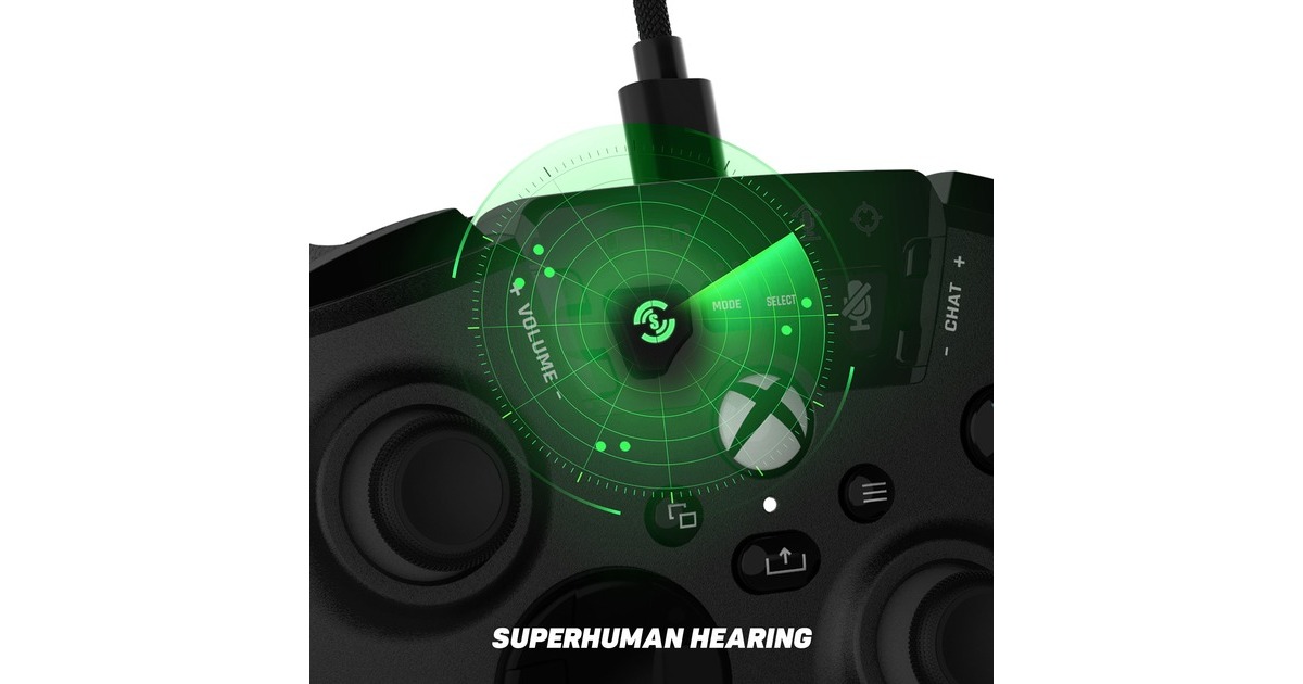 Einfach zugängliche Audiosteuerung (4 EQ-Voreinstellungen, Spiel- und Chat-Mixer, Mikrofon-Monitoring und mehr), Superhuman Hearing, Pro-Aim-Focus-Modus, 2 anpassbare Quick-Action-Tasten, 4 Konfigurationsprofile, Vibrationsmotoren in Griffen und Triggern, Micro-Cooling (Kühlung an den Griffen), Komfortable Ergonomie, Abnehmbares Kabel |