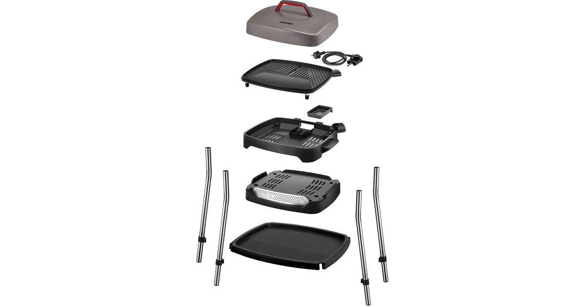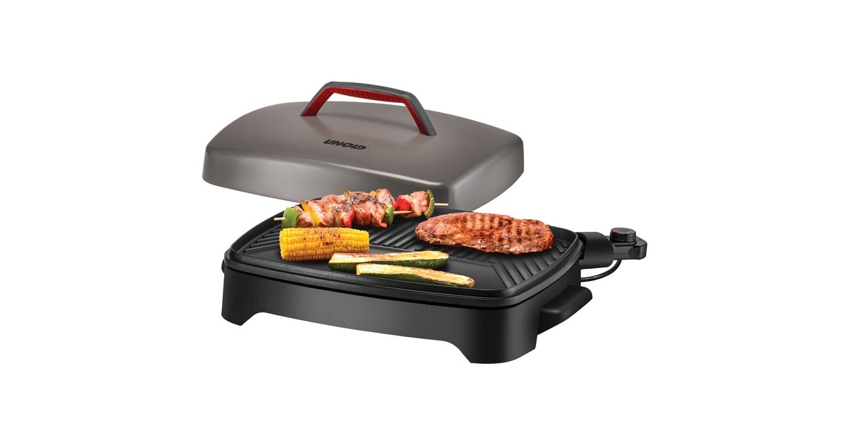 Der BARBECUE Power Grill 58580 von Unold bietet köstlichen Grillspaß, ohne Kohle und Rauch. Mit seiner großen Grillfläche (35cm x 40cm) hat er Platz für jede Menge Grillgut, um die Familie und die Gäste zu verwöhnen. Mit dem stufenlos einstellbaren Temperaturregler wird die passende Hitze für empfindliches Fischfilet, lecker marinierte Steaks oder aromatische Folienkartoffeln ganz einfach eingestellt. Die Grillplatte ist für die bequeme Reinigung entnehmbar und antihaftbeschichtet, sie bietet die perfekte Kombination aus zwei Grillflächen: glatt und geriffelt (für die typische Grill-Optik bei Steaks). Die Fettauffangschale ist bequem entnehmbar. Auf seinem Tischgestell aus hochwertigem Kunststoff wird der Grill zum Blickfang auf dem Balkon und der Terrasse, die praktische Ablagefläche im Gestell bietet Platz für Gewürze, Marinaden, Grillzange oder Geschirr. Weil der Tischgrill für das platzsparende Verstauen komplett zerlegbar ist, kann er auch ohne Gestell als Tischgrill für gemütliche Grillrunden im kleinen Kreis einsetzt werden.Art.-Nr.: 1445971