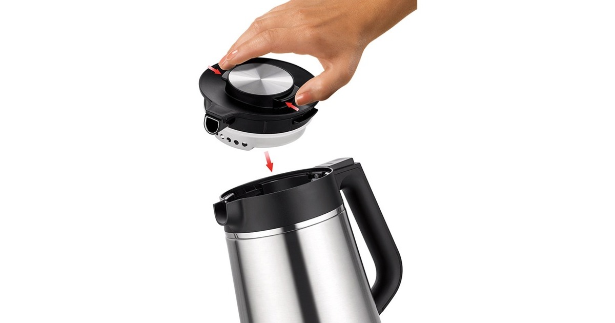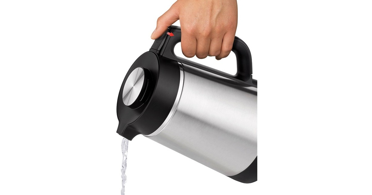 Im Blitzkocher Thermo lassen sich nicht nur circa 1,5 Liter Wasser flott zum Kochen bringen. Der Wasserbehälter mit doppelwandiger Vakuumisolierung übernimmt auch den Job als schicke Isolierkanne: Circa 2 Stunden bleibt das Wasser 70°C warm, nach 4 Stunden hat es immer noch 60°C! Ideale Temperaturen zum Beispiel für grüne und weiße Tee-Varianten. Durch sein Cool-Touch-Finish ist der abnehmbare, kabellose Wasserbehälter außen immer lediglich handwarm. Also keine Verbrennungsgefahr. Trockengehschutz und Kochstopp mit Abschaltautomatik sorgen für Sicherheit. Und die 360° drehbare Kontaktverbindung bringt Flexibilität ins Spiel. Komfort wird beim Blitzkocher Thermo groß geschrieben: Der mit einer Sicherheitsverriegelung ausgestattete Deckel lässt sich auf Knopfdruck öffnen. Und für die bequeme Reinigung stehen die große Behälteröffnung und das abgedeckte Heizelement. Der Ein-/Ausschalter signalisiert mit der Funktionskontrollleuchte: Hier wird Wasser erhitzt! Wenn kein heißes Wasser benötigt wird, lässt sich das formschöne Gerät platzsparend verstauen. Denn das circa 70 cm lange Kabel lässt sich im Sockel aufbewahren.Art.-Nr.: 1693315
