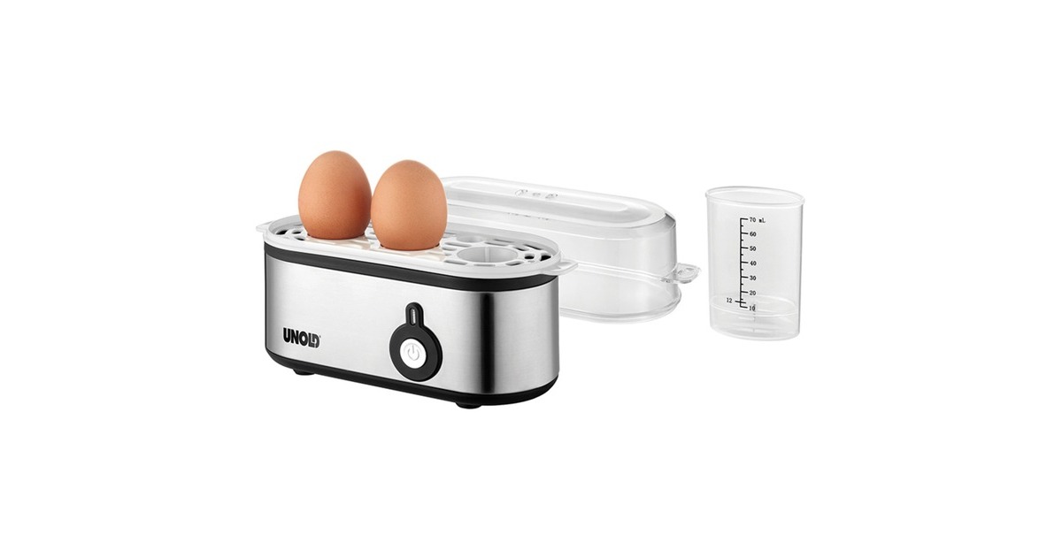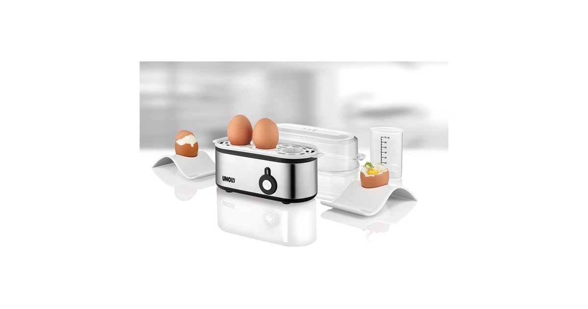 Unold hat die Lösung für alle, die auf platzsparende Küchengeräte wert legen: Der Eierkocher Mini für ein bis drei Eier passt auch in die kleinste Küche. Messbecher mit Skala und Eierpiekser sind im Zubehör enthalten. Der Eierkocher Mini hat ein hochwertiges Edelstahlgehäuse. Dank des Eiereinsatzes mit Griff lassen sich die gekochten Eier sicher entnehmen. Bei Erreichen des gewünschten Härtegrades ertönt ein Signal. Alle nicht elektrischen Teile sind spülmaschinengeeignet.Art.-Nr.: 1371955