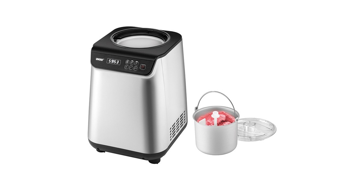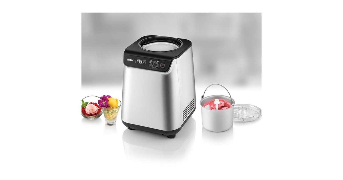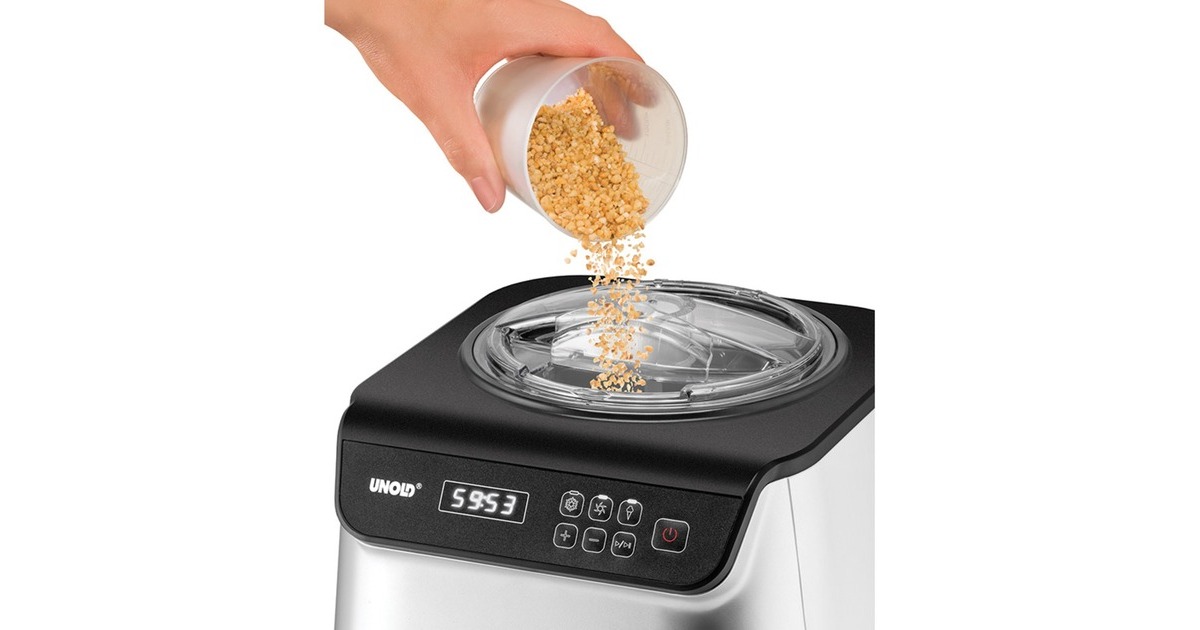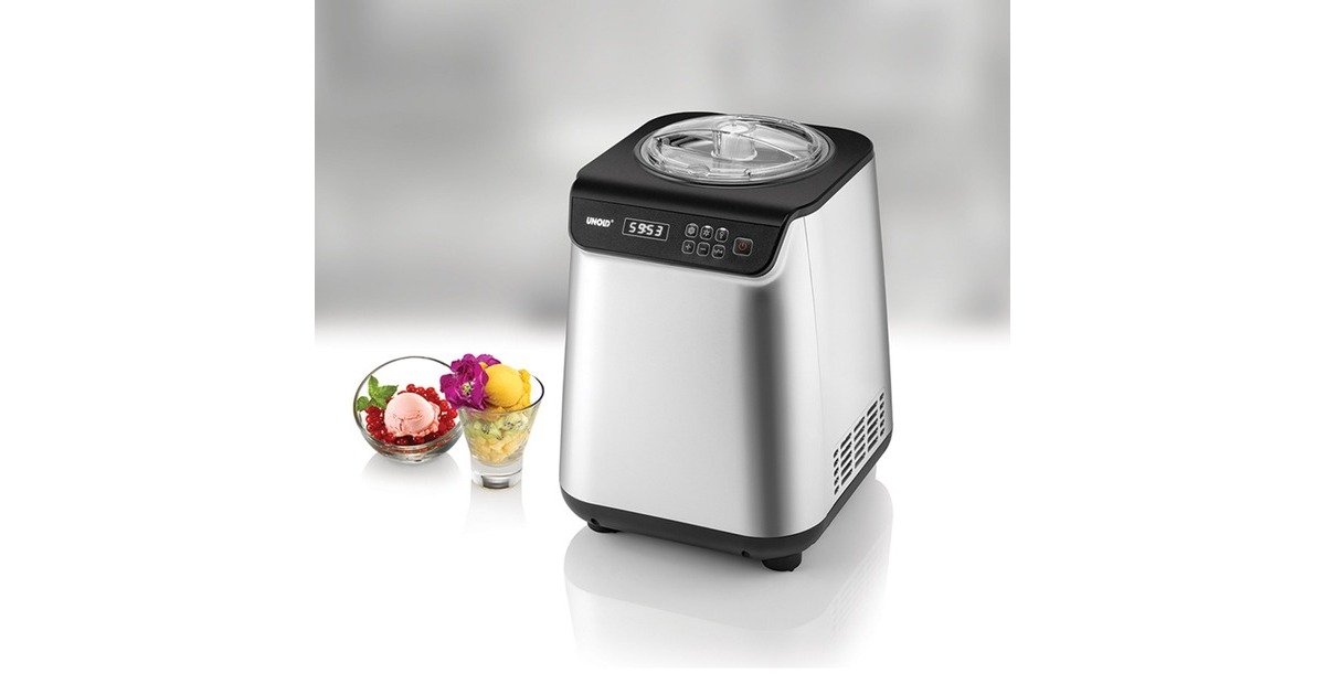 Mit der kompakten Eismaschine Uno ist der Do-it-yourself-Eisgenuss ein Kinderspiel. Sind die Zutaten vorgekühlt, lassen sich in nur 30 Minuten 1,2 Liter köstliche Sahneeiscreme zubereiten. Aber auch für vegane, laktosefreie und steviahaltige Rezepturen ist das kompakte Gerät ideal. So lassen sich beste Zutaten nach persönlichem Geschmack verarbeiten! Im ebenso eleganten wie robusten Gehäuse befindet sich der vollautomatische, selbstkühlende Kompressor, der für eine kontinuierliche Kälteerzeugung sorgt. Der Motor ist sogar für den Dauerbetrieb in der hauseigenen Eisdiele geeignet. Bis zu circa -35°C reicht der Gefrierbereich der Eismaschine Uno, die über einfach zu bedienende Tasten aktiviert wird. Das LCD-Display informiert über die Restlaufzeit und bietet auch die praktische Timer-Funktion: von 5 bis 60 Minuten einstellbar, wird das Eis zum gewünschten Zeitpunkt fertiggestellt und kann dann genussvoll weggeschleckt werden. Rezept-Inspirationen gibt es in der Bedienungsanleitung gleich mit! Durch die Deckelöffnung können weitere Zutaten zugegeben werden – Nüsse, Krokant, Fruchtstücke… Für die bequeme Reinigung sorgt der entnehmbare, eloxierte Eisbehälter.Art.-Nr.: 1528468
