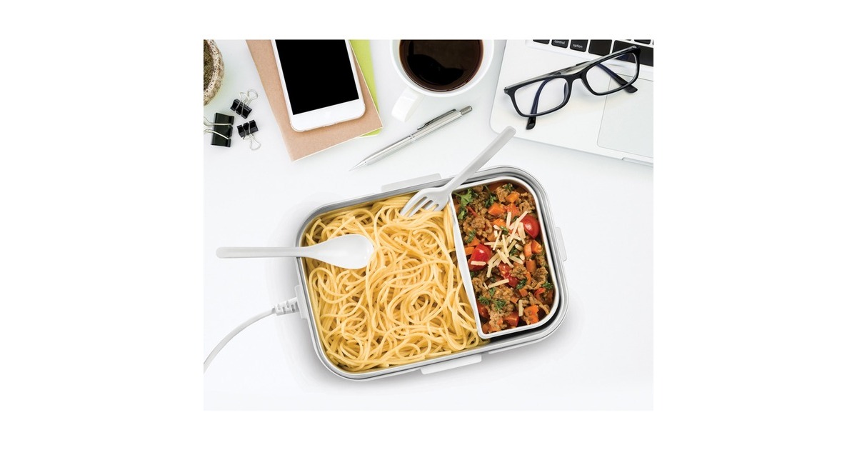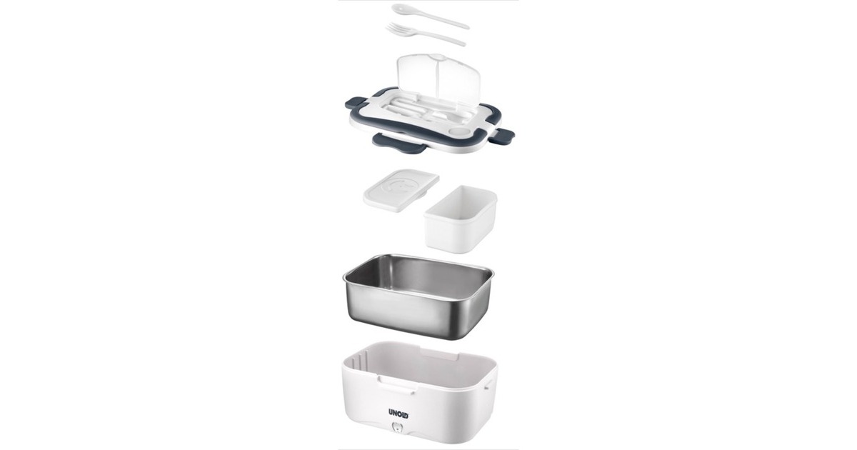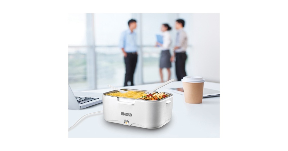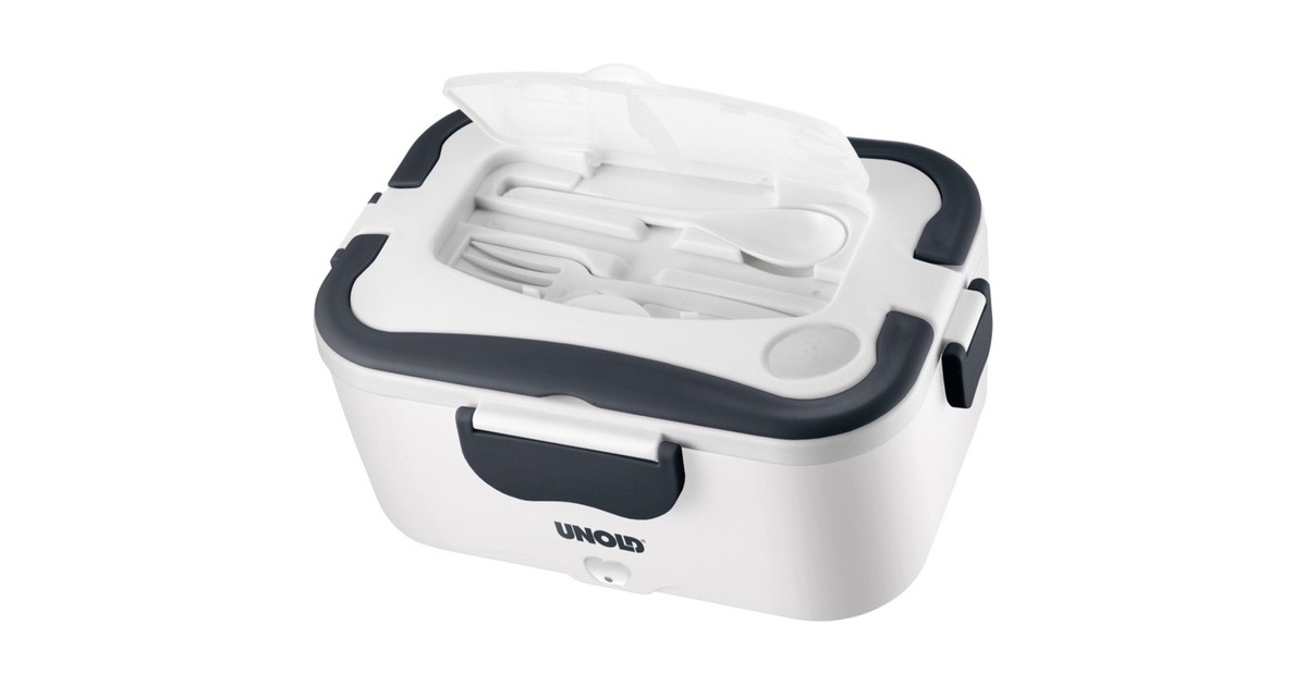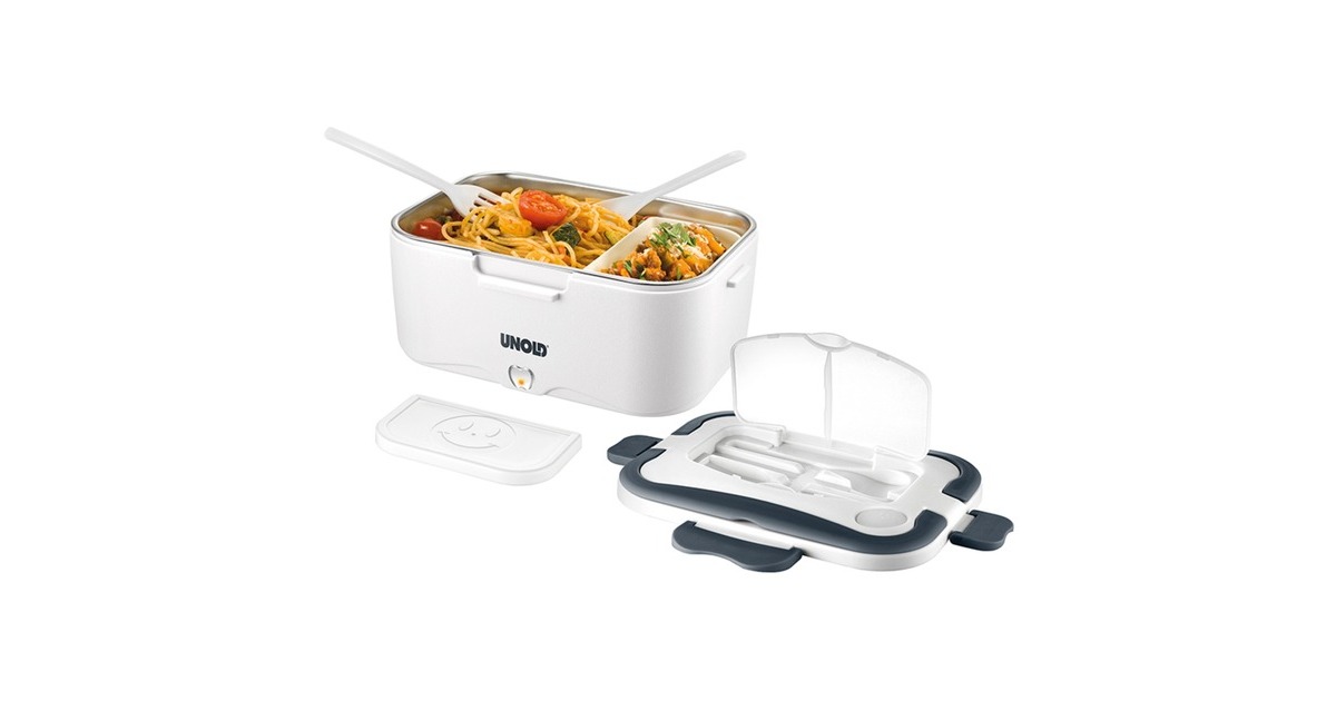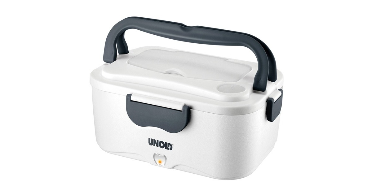 Leckereien rein, Strom an und fertig ist das Mittagessen! Für alle, die keine Mikrowelle im Büro haben oder viel unterwegs sind, ist die elektrische UNOLD Lunchbox eine hervorragende Lösung. Löffel und Gabel im Deckel und die herausnehmbare Dose mit Deckel für Beilagen oder Nachtisch machen die Lunchbox zum kleinen Genuss-Wunder. In der UNOLD Lunchbox mit einem Volumen von ca. 1,5 Liter lassen sich Speisen bis maximal ca. 70°C erwärmen. Lunchboxdeckel, Besteck, Dose mit Deckel und der herausnehmbare Edelstahlbehälter sind spülmaschinengeeignet. Art.-Nr.: 1446047