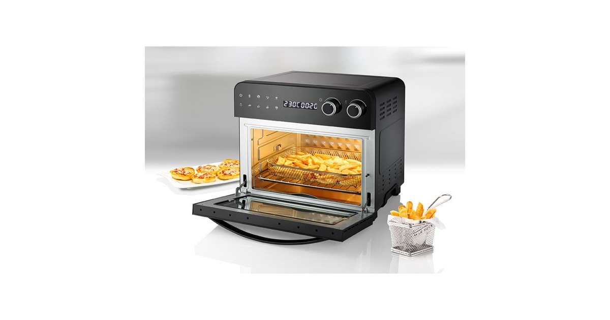 Zubehör: Grillrost, Grillrostheber, Backblech, Frittierkorb, Drehspieß mit Halteklammer, Bedienungsanleitung mit Rezepten |