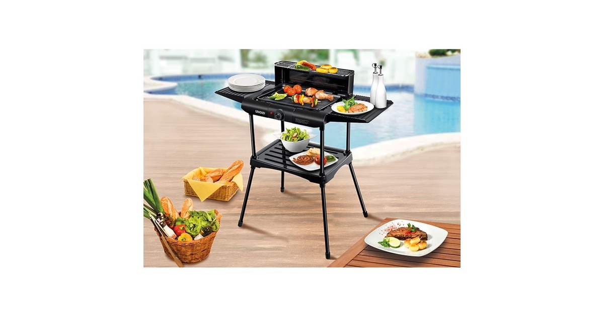 Der Standgrill Unold 58565 bietet nicht nur viel Leistung sondern auch viel Platz. Eine antihaft-beschichtete Druckgussaluminium Grillplatte und eine stufenlose Temperaturregelung sorgen für optimale Grillergebnisse bei 1.600 Watt Leistung. Ein stabiler Tisch mit großer Arbeitsfläche, zwei seitlich einsteckbare Ablageflächen und ein Ablagegitter bieten Platz um Grillgut vorzubereiten oder um Grillzubehör übersichtlich abzulegen. In puncto Sicherheit glänzt der 58565 mit einem Überhitzungsschutz und einsteckbarem Windschutz.Art.-Nr.: 855518