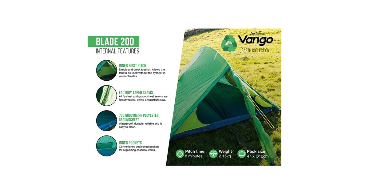 Das 2-Personen-Zelt Blade 200 in der Farbe "Pamir Green" von Vango besteht aus recyceltem Protex Eco-Gewebe. Das super kompakte Tunnelzelt Blade hat nur einen Gestängebogen, wodurch es leicht und schnell aufgebaut ist. Die Stange ist am Innenzelt befestigt, so dass es in warmen Nächten auch ohne Außenzelt aufgestellt werden kann. Das Meshgewebe sorgt für bessere Belüftung, ohne dass Insekten ins Zelt gelangen. Die günstig platzierten Taschen im Innenzelt bieten Stauraum für kleine Gegenstände, für die Campingausrüstung gibt es in der Apsis einen trockenen Stellplatz. Der Eingang lässt sich nach rechts und nach links öffnen. Das Blade 200 ist das perfekte Zelt für Kurztrips, bei denen Packmaß und Gewicht im Vordergrund stehen.Art.-Nr.: 100035214