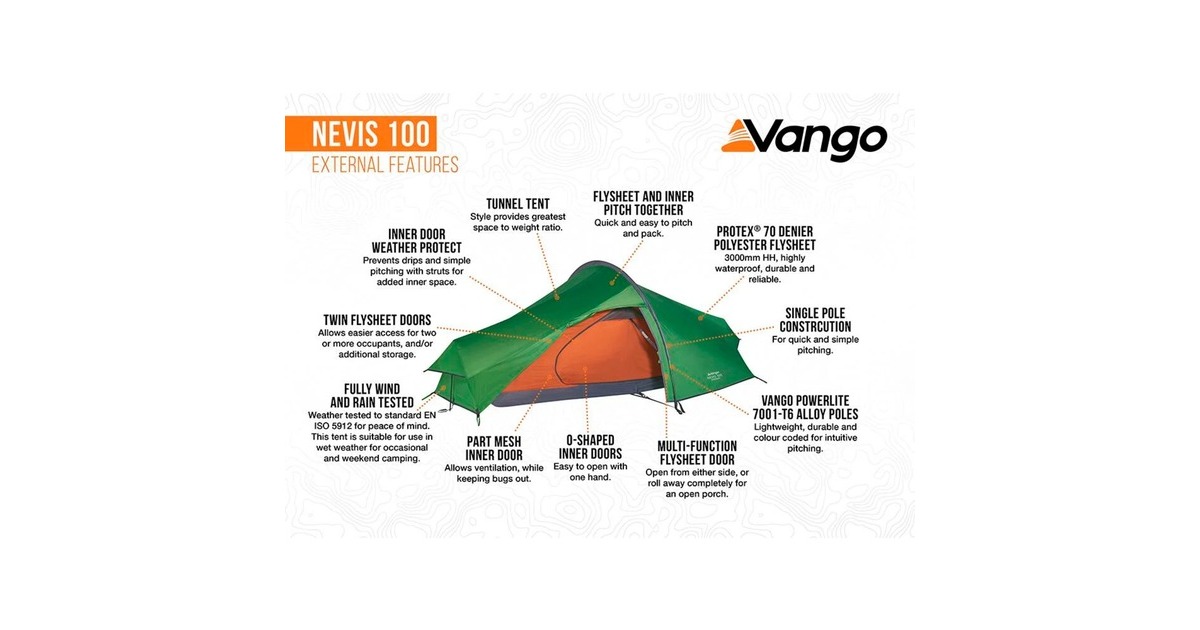 Das 1-Personen-Zelt Nevis 100 in der Farbe "Pamir Green" von Vango ist die ideale Wahl für Einzelcamper, die nach einem Tunnelzelt mit Seiteneingang suchen und Gewicht und Packgröße auf ein Minimum reduzieren müssen. Das Innen- und Außenzelt können gemeinsam aufgestellt werden, was den Auf- und Abbau wesentlich erleichtert. Die Tür der Schlafkabine hat einen O-förmigen Schnitt. So geht das Öffnen und Schließen mit einer Hand erheblich leichter. Das Meshgewebe sorgt für bessere Belüftung, ohne dass Insekten ins Zelt gelangen. Die günstig platzierten Taschen im Innenzelt bieten Stauraum für kleine Gegenstände, für die Campingausrüstung gibt es in der Apsis einen trockenen Stellplatz. Das Vango PowerLite 7001-T6 Aluminium Gestänge ist leicht, kompakt und trotzdem flexibel und robust. Das Nevis 100 ist mit Vangos TBS II (Tension Band System) ausgestattet, welches das Zelt und das Gestänge bei extremem / richtungswechselndem Wind um das Vielfache stabiler macht. Ein großartiges Zelt auch für all jene, die gerade beginnen, die Natur draußen zu erkunden.Art.-Nr.: 100035168