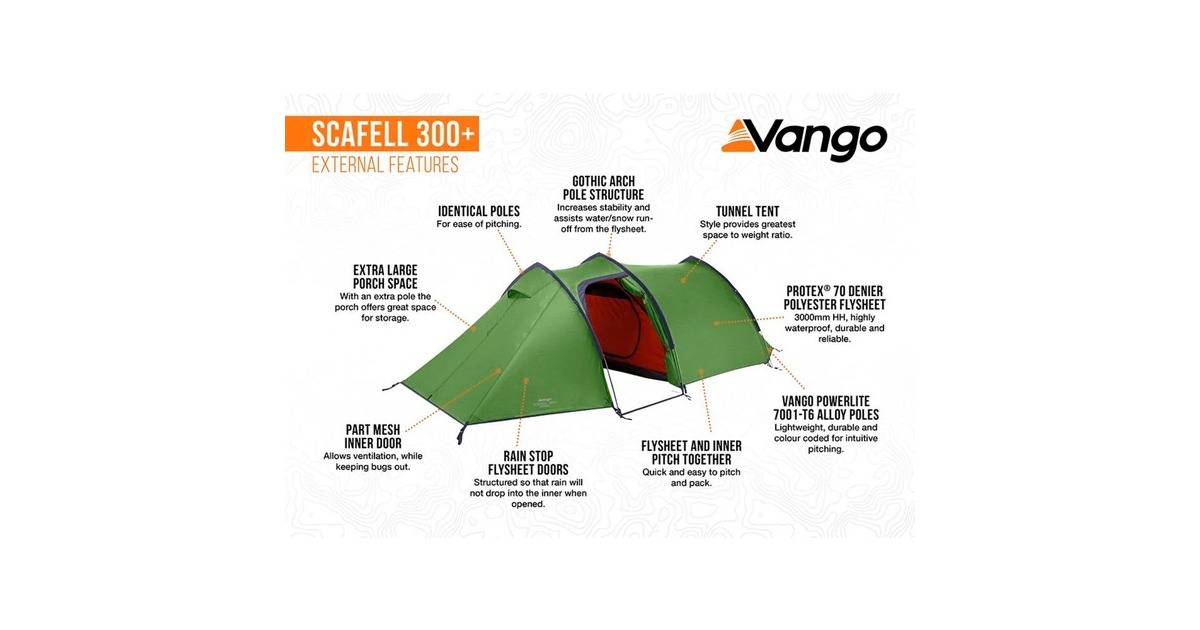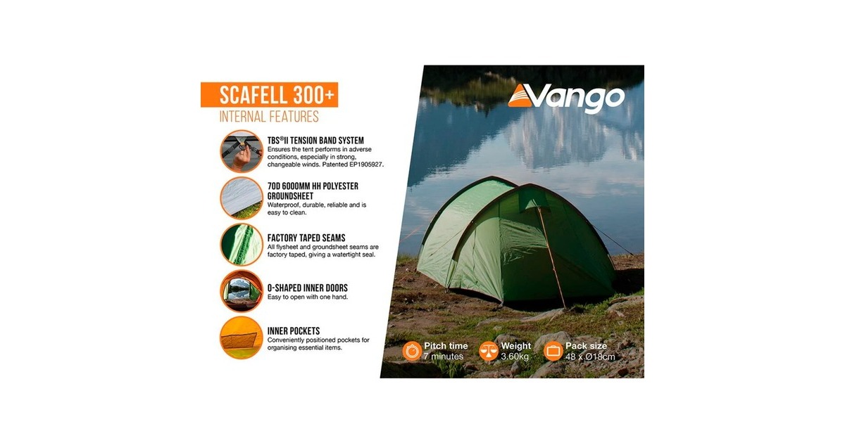 Das 3-Personen-Zelt Scafell 300 Plus in der Farbe "Pamir Green" von Vango hat drei identische Gestängebögen für schnelles und einfaches Aufbauen, man muss nichts vorsortieren. Es ist die ideale Wahl für Camper, die nach einem Tunnelzelt mit zwei Seiteneingängen suchen, z.B. für Motorradtouren, wo man den größeren Vorraum zu schätzen weiß. Die gotisch geformten Gestängebögen bieten zusätzliche Stabilität und Kopffreiheit. Das Innen- und Außenzelt können gemeinsam aufgestellt werden, was den Auf- und Abbau wesentlich erleichtert. Das Vango PowerLite 7001-T6 Aluminium Gestänge ist leicht, kompakt und trotzdem flexibel und robust. Die Tür der Schlafkabine hat einen O-förmigen Schnitt. So geht das Öffnen und Schließen mit einer Hand erheblich leichter. Das Meshgewebe sorgt für bessere Belüftung, ohne dass Insekten ins Zelt gelangen. Die günstig platzierten Taschen im Innenzelt bieten Stauraum für kleine Gegenstände, für die Campingausrüstung gibt es im Vorbau viel Stellplatz. Das Scafell 300 Plus ist mit Vangos TBS II (Tension Band System) ausgestattet, welches das Zelt und das Gestänge bei extremem / richtungswechselndem Wind um das Vielfache stabiler macht. Das geringe Gewicht wird auch Wanderer und Rucksacktouristen ansprechen und machtn dieses Zelt zu einem einfachen Zelt zum Erkunden.Art.-Nr.: 100035204