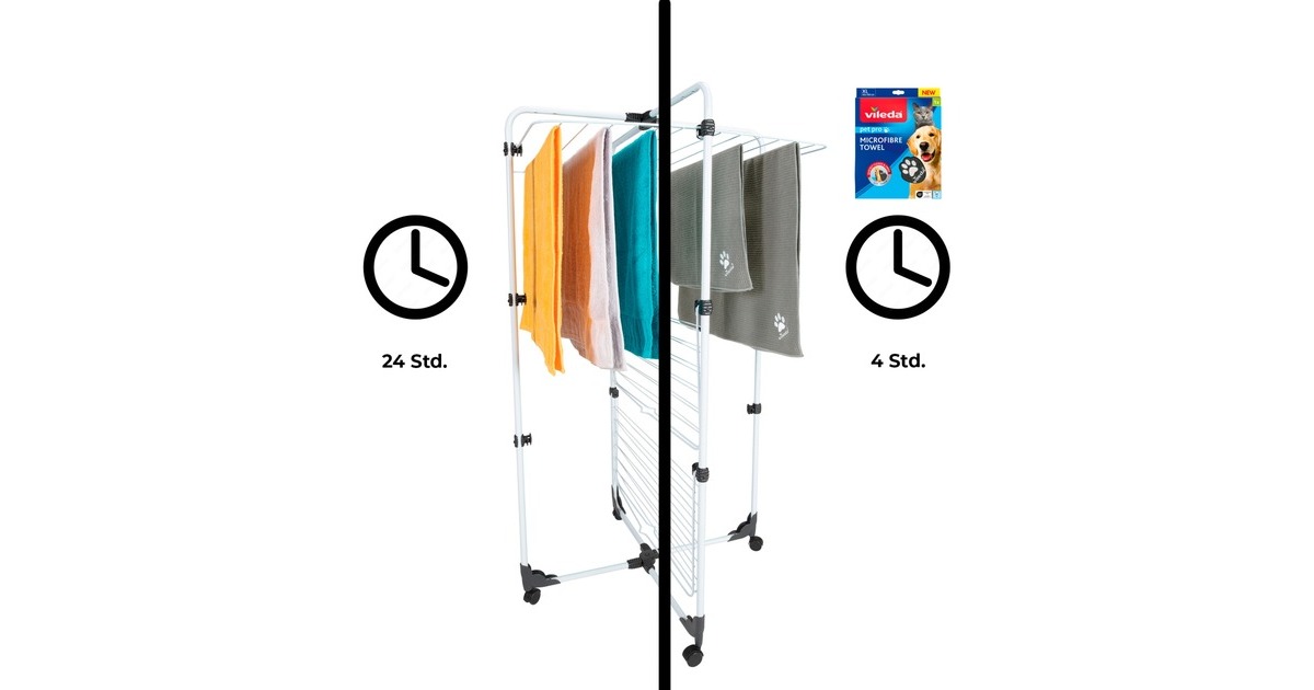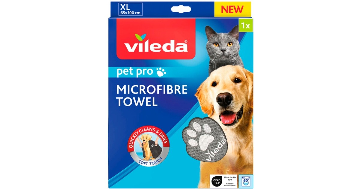 Mit dem Vileda Pet Pro Microfaser-Handtuch XL macht man sein geliebtes Haustier nicht nur effizient und schnell sauber, sondern man kann es auch ganz behutsam abtrocknen. Das Vileda Pet Pro macht Schluss mit feuchten Missgeschicken im Haus. Das Vileda Pet Pro Handtuch saugt Feuchtigkeit dank seiner sanften Microfaser im Nu auf und trocknet genauso schnell wieder. So ist es immer einsatzbereit, wenn es für das Haustier nach dem nächsten Spaziergang benötigt wird. Das Vileda Pet Pro Microfaser-Handtuch trocknet innerhalb von etwa 4 Stunden, während herkömmliche Baumwollhandtücher deutlich länger brauchen. Die besondere "Waffelstruktur" entfernt schonend Schmutzpartikel und sorgt für eine hohe Lebensdauer. Das Vileda Pet Pro Microfaser-Handtuch gibt dem Haustier die Extrapflege, die es verdient.Art.-Nr.: 100043257