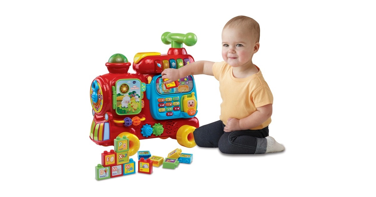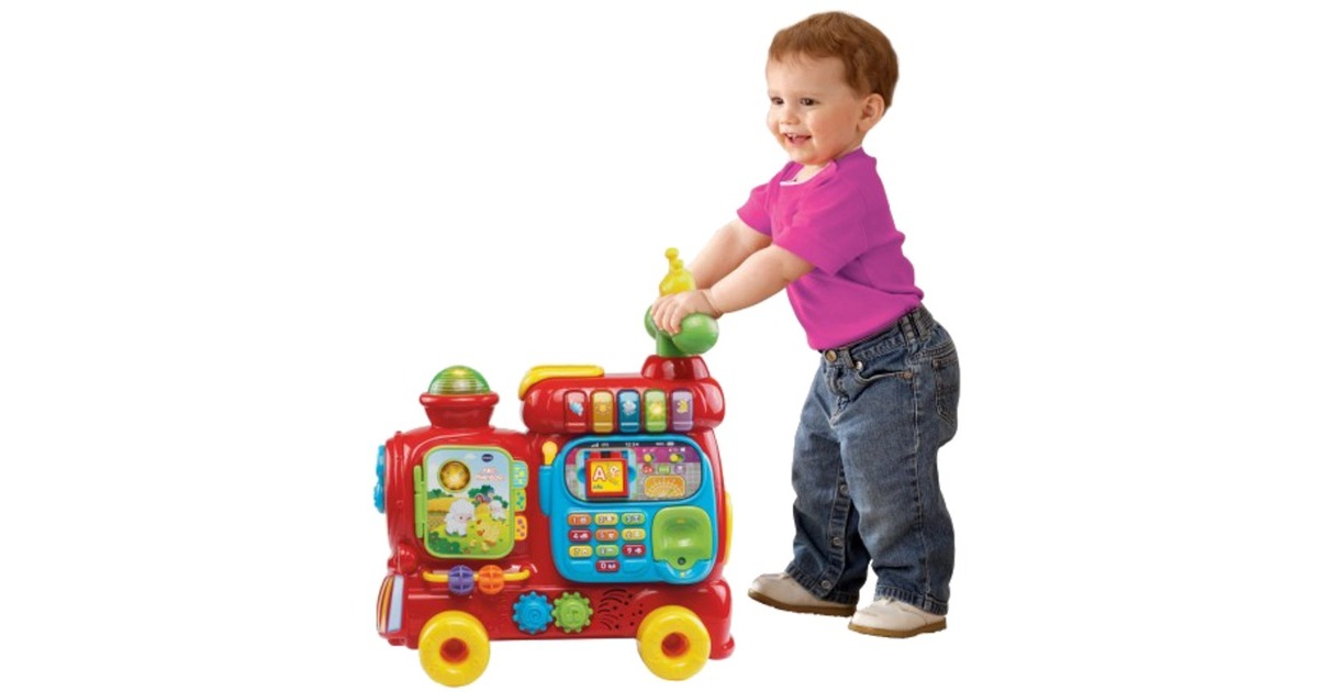 Zahlen, Buchstaben, Farben, Tiere, Musik, 13 beidseitig bedruckte Buchstabenklötze (werden beim Einsetzen erkannt), abnehmbares Walkie Talkie, Buch mit Seite zum Umblättern (löst Melodien und Lieder aus), 5 aufleuchtende Klaviertasten, 10 Zahlen-Tasten, Uhr mit großem Zeiger an der Vorderseite der Lok, Anhänger für die praktische Aufbewahrung und Beförderung, 4 gesungene Lieder, 10 Kindermelodien |