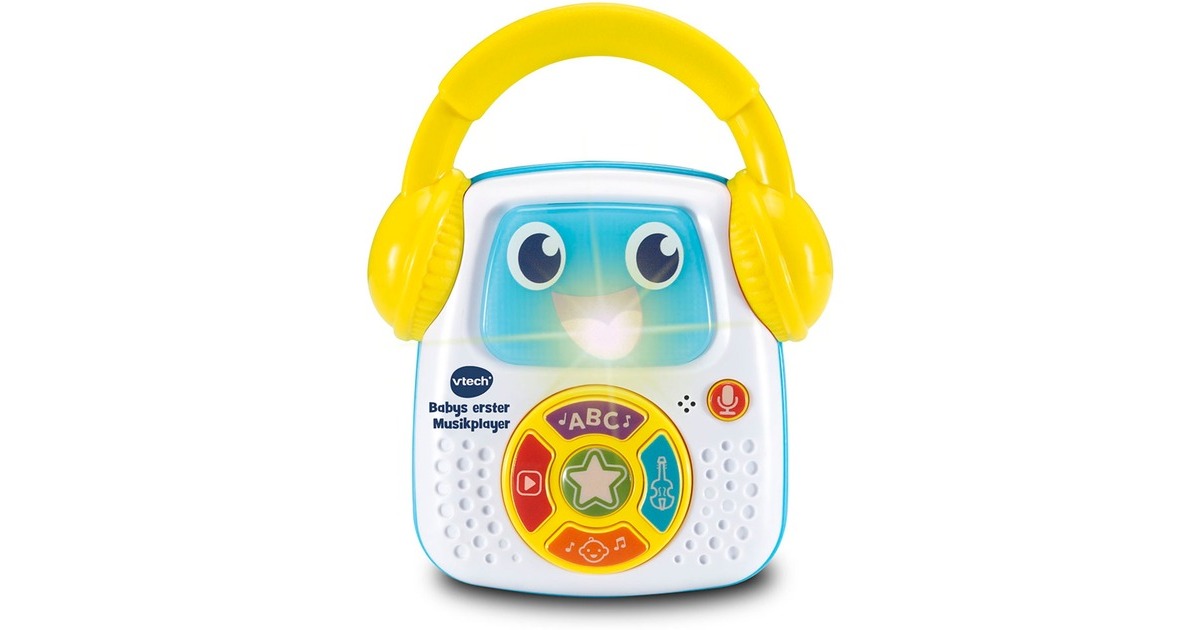 Babys erster Musikplayer ist ein süßer Musikplayer mit praktischem Tragegriff, der zu musikalischen Entdeckungen einlädt. Der Player bietet fünf verschiedene Spielmodi, die über eine eigene Taste gestartet werden: Modus für Abzählreime, Modus für klassische Musik zum Entspannen, Liedermodus, Sternmodus zur Interaktion mit dem Musikplayer, Aufnahmemodus. Im Aufnahmemodus können Eltern ein eigenes Lied, eine kurze Geschichte, liebevolle Wörter etc. fürs Kind aufnehmen, die hinterher wieder abgespielt werden können.Art.-Nr.: 100037677