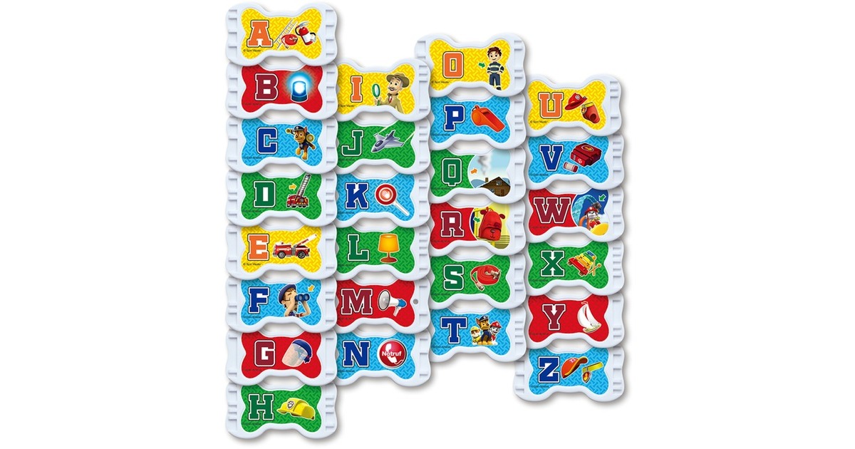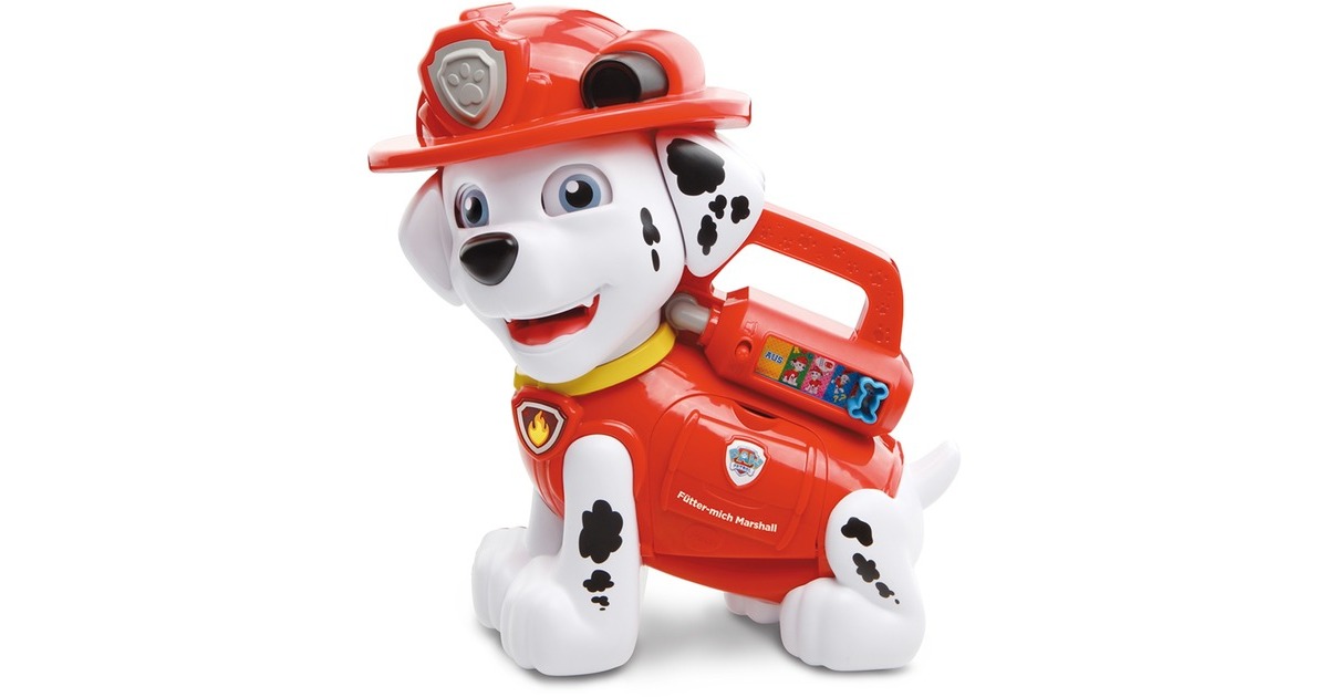 Mit Marshall und seinen Leckerlies das Alphabet lernen! 26 Buchstaben-Leckerlies, Leckerlie-Erkennungsbereich, leuchtende Plaketten-Taste, blinzelnde Augen und sich bewegende Ohren. 4 Spielmodi: Fütter mich-Modus, Rettungs-Modus, Quiz-Modus, Musikmodus. Aufbewahrungsfach für die Leckerlies, 26 Melodien (eine je Buchstabe), Kindersicheres Batteriefach und Abschaltautomatik.Art.-Nr.: 1260454