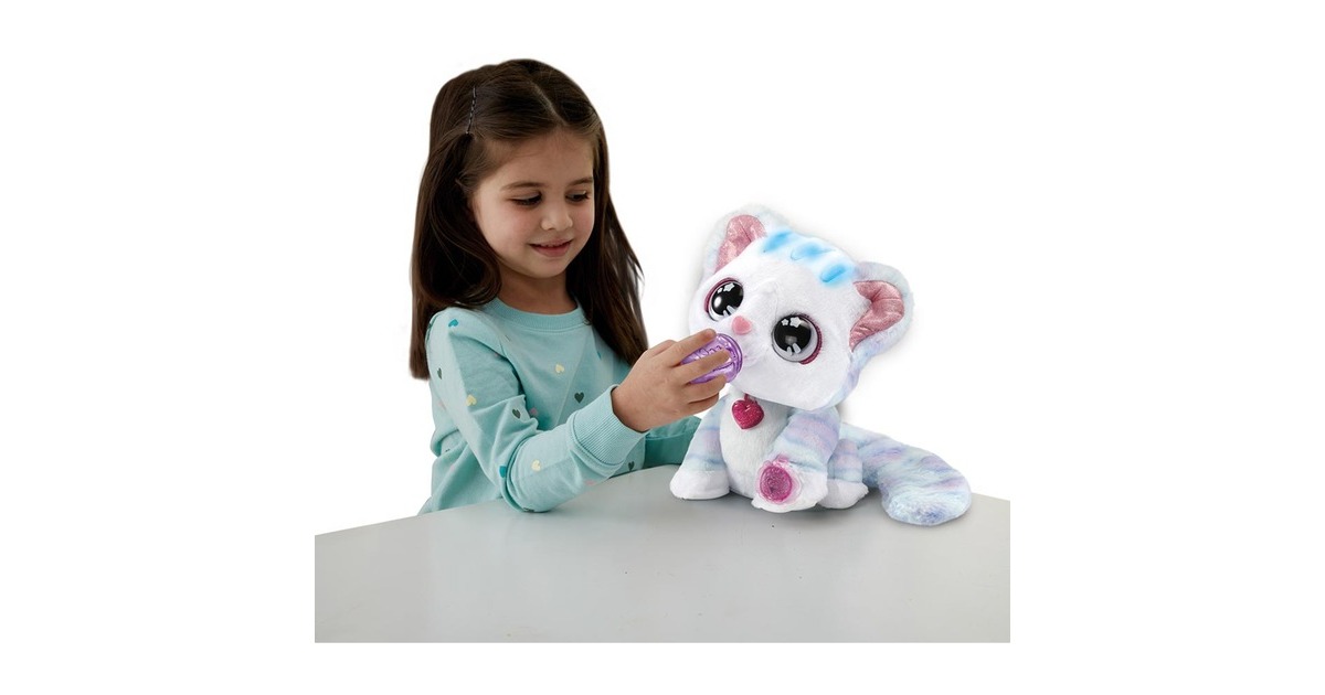 Wenn Glamour, die Glitzerkatze, glücklich ist, überrascht sie mit funkelnden Pfotenabdrücken. Die Streifen an ihrem Kopf ändern je nach Stimmung die Farbe. So weiß man immer, wie es Glamour geht!Art.-Nr.: 1764236