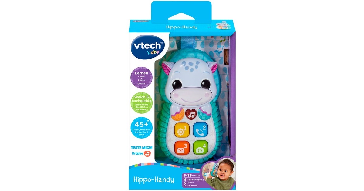 Das Hippo-Handy ist ein Kinderfreundliches Spieltelefon in Nilpferdoptik mit bunten Tasten aus Weichplastik. Drückt man auf die Schnauze des Nilpferds, spricht und singt es. Die leuchtende Herztaste löst Melodien, Lieder, Geräusche und Sätze aus. Über die vier Weichplastiktasten werden verschiedene Sätze ausgelöst. Dank praktischer Schlaufe kann das Hippo‐Handy an Gitterbettchen, Kinderwagen etc. angebracht werden.Art.-Nr.: 100037676