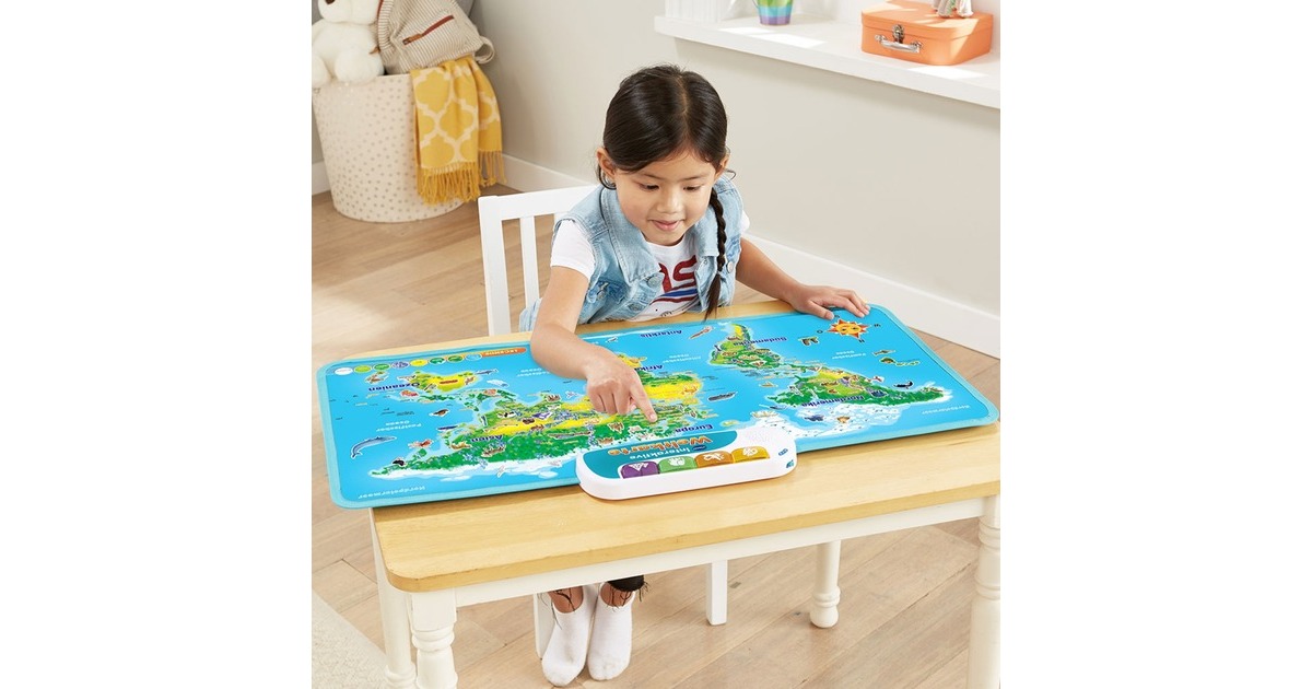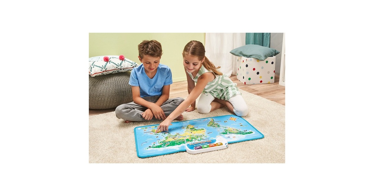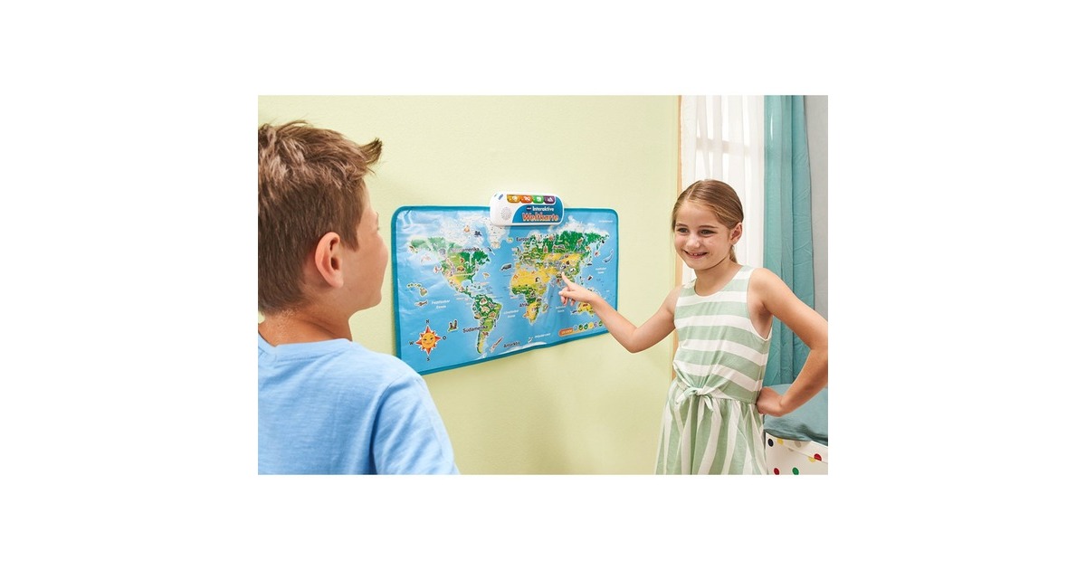 Die interaktive Weltkarte kann auf dem Boden, dem Schreibtisch oder an der Wand hängend genutzt werden. Sie enthält über 1000 Fakten und Fragen rund um die Welt - zu Kontinenten, Ländern, Naturwundern, Sehenswürdigkeiten, Tieren, Sprachen und vielem mehr. Dabei können drei Spieleinstellungen genutzt werden: Im Entdeckermodus werden alle Inhalte frei erforscht, als Weltenbummler müssen Länder so schnell wie möglich gefunden werden, Sightseeing begleitet Kinder auf der Suche nach Sehenswürdigkeiten und bei der Tiersuche müssen Tiere aller Kontinente gefunden werden.Art.-Nr.: 1847287