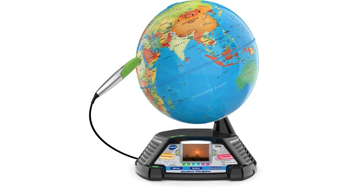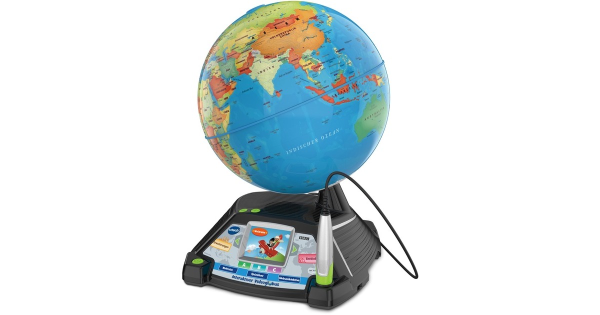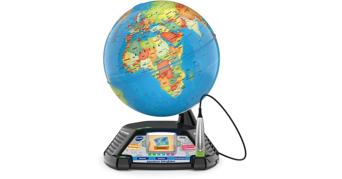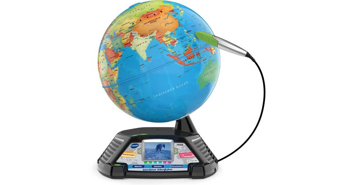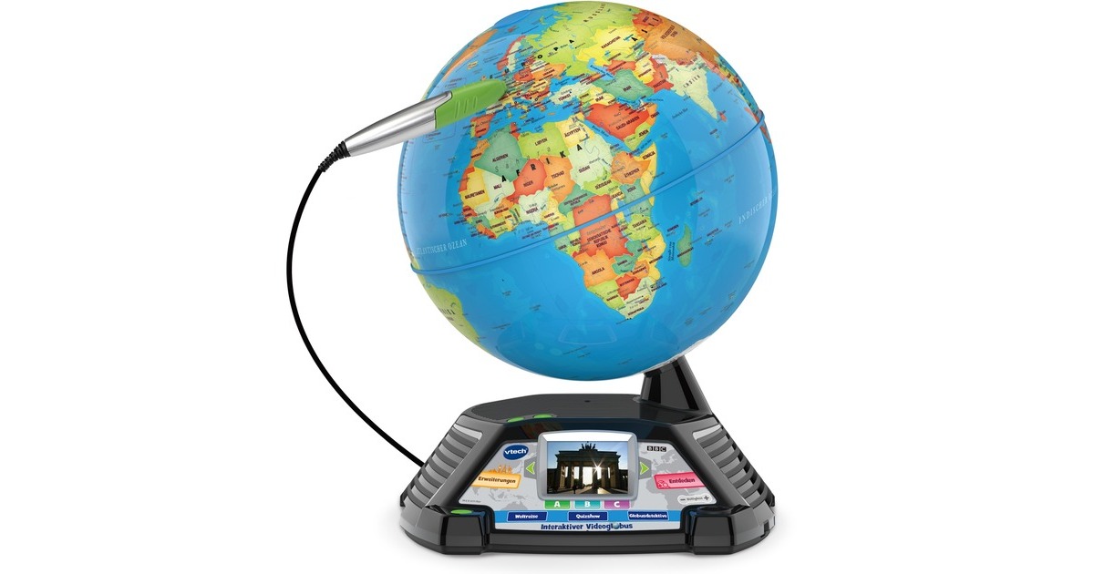 Mit dem interaktiven Videoglobus von Vtech gehen Kinder ab 7 Jahren auf eine spannende Weltreise! Dieses tolle Lernspielzeug enthält über 9000 Fragen, Fakten, Videos und Animationen. An der Vorderseite ist ein 6,1 cm (2,4")-Farbdisplay angebracht, auf dem Videos und Animationen abgespielt werden. Mit dem interaktiven Stift können Orte auf dem Globus angetippt werden. Dabei gibt es 11 Kategorien und vier verschiedene Spielmodi, wobei in ausgewählten Spielen auch zwei Spieler im Wettbewerb gegeneinander antreten können. Inhalte können über den Download-Manager noch erweitert werden. Der Durchmesser des Globus liegt bei 26 Zentimetern.Art.-Nr.: 1530110