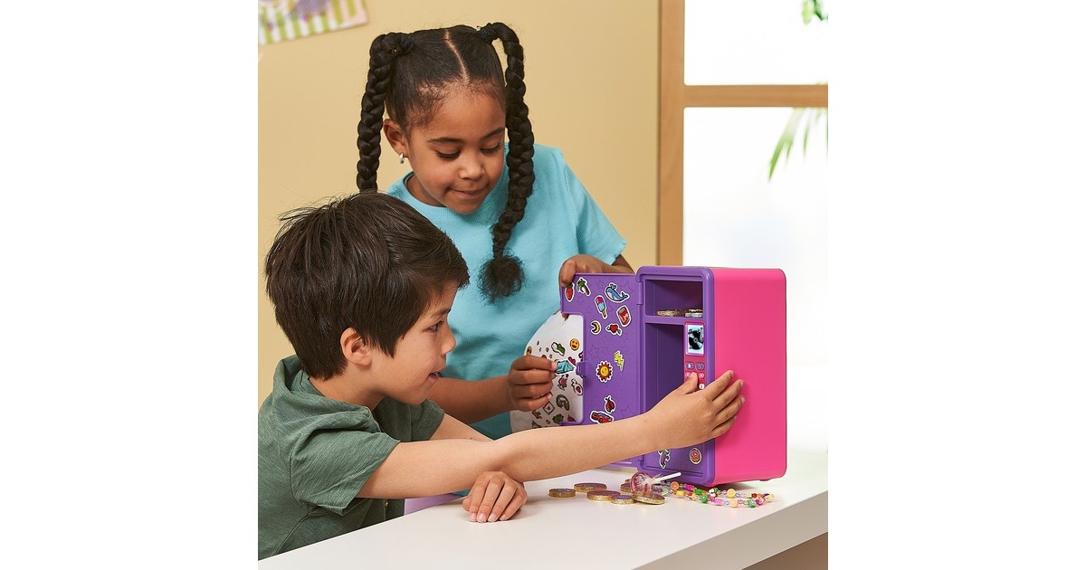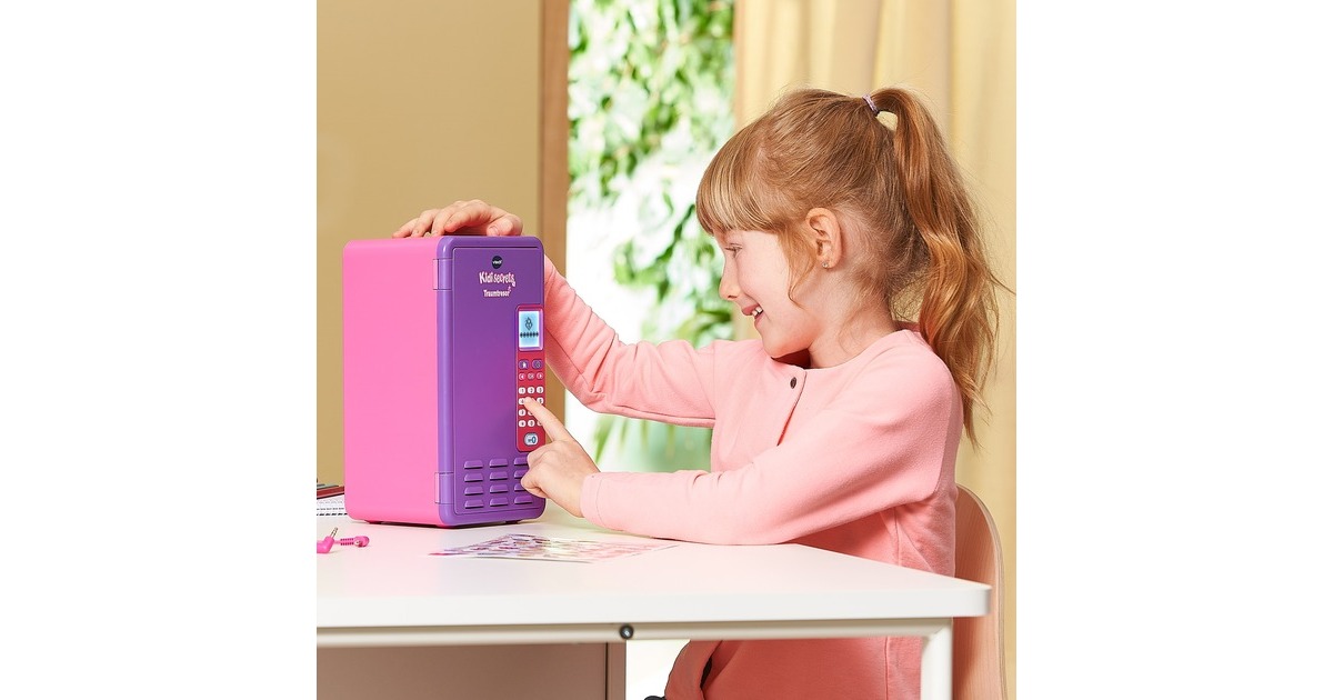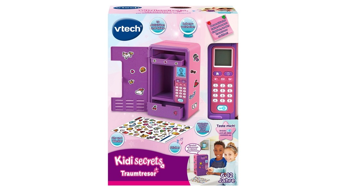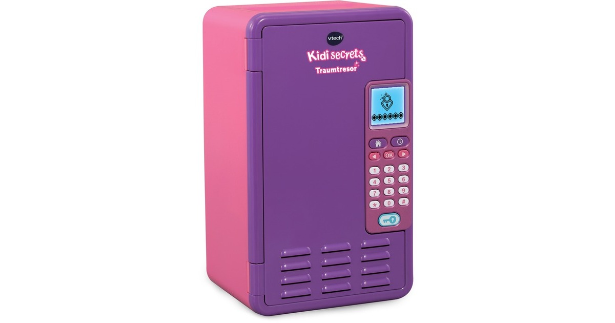Mit dem Kidisecrets Traumtresor sind Geheimnisse immer sicher verwahrt. Doch dieser Spielzeug-Tresor, der per Zahlencode sicher verschlossen wird, ist nicht nur einfach eine tolle Aufbewahrungsmöglichkeit: Er bietet tolle Spiele und Aktivitäten: Lebensweisheiten hören, Glückszahl erraten, magische Karten legen, Geheimcode knacken, Reihenfolgen richtig merken und Schätze suchen. Hinzu kommen eine Weckerfunktion mit verschiedenen Wecktönen und ein Anschluss für einen externen Musikplayer (separat erhältlich). Im Inneren gibt es drei separate Fächer für ausreichend Stauraum. Mit den beiliegenden Aufklebern kann der Tresor außerdem individualisiert werden.Art.-Nr.: 1919033