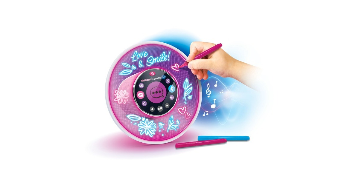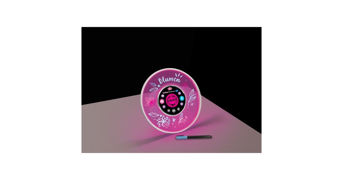 Der KidiSmart Glow Art von VTech ist ein stilvoller Bluetooth-Lautsprecher mit Sprachsteuerung und beleuchtetem Rahmen - aber nicht nur das: Mit dabei sind vorinstallierte Musik, Spiele, Witze und Rätsel. Außerdem kann der beleuchtete Rahmen individuell mit Neon-Markern verziert werden, es gibt eine Uhr mit Weckfunktion und die Lichteffekte passen sich der Musik an.Art.-Nr.: 1626006