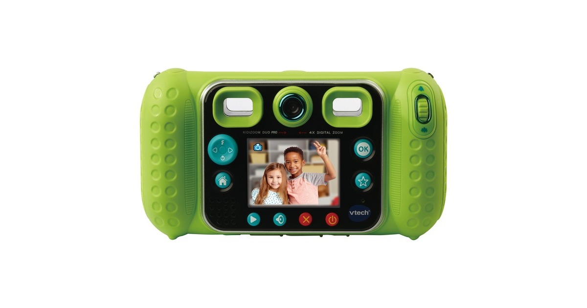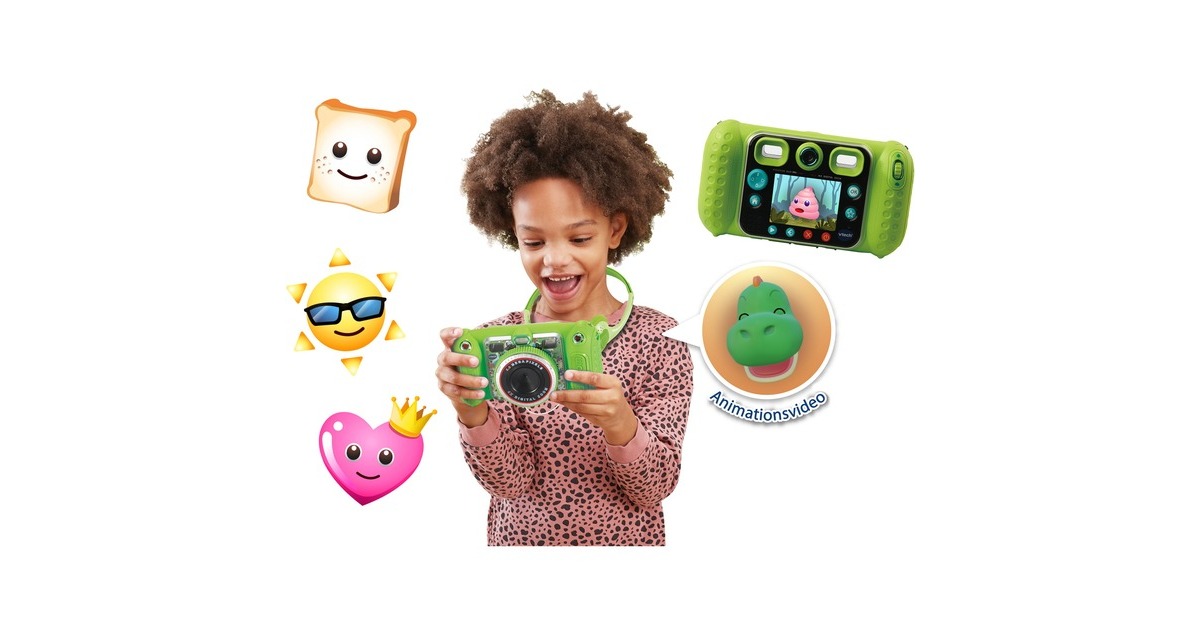Die VTech KidiZoom Duo Pro ist eine robuste Digitalkamera mit integriertem Musik- Player, Film- und Panorama-Funktion, Bildbearbeitung und Spielen. Sie hat eine Vorder- und Rückkamera für tolle Bilder und Videos (5 MP, Fotos auf 6 MP extrapoliert.). Vier Kreativ-Apps und Stimmrekorder, darunter die neue Foto-Story-Funktion, mit der Bilder zu einer Story zusammengefügt werden können, und neue Animationsvideo-Funktionen verwandeln die Kamera Gesichter in eine interaktive Comic-Figur. Mit tollen AR-Spielen in der ''Erweiterte Realität'' kann man mit lustigen Videofiltern spielen. Mit über 70 Fotoeffekten und zahlreichen Fotorahmen und Stempeln gestaltet sich vor allem die Dual-Kamera-Aufnahme - die gleichzeitige Aufnahme über Vorder- und Rückkamera - zu einem Erlebnis. Mit dem verbesserten Videorekorder werden Animationen per Gesichtserkennung ausgelöst und gesteuert. Er liefert bewegte Bilder mit einer Videoauflösung von 640 x 480 MP. Das 2.4'' LCD-Farbdisplay sowie der große Doppelsucher lassen das Objekt der Fotografie schnell und präzise erfassen. Ein spezieller Elternkontrollbereich ermöglicht Einstellungen für Eltern, die einen Überblick über das Nutzverhalten der Kinder haben wollen. Die KidiZoom Duo Pro ist linkshänderfreundlich: der Auslöser kann wahlweise links oder rechts eingestellt werden. Der 256 MB große interne Speicher ist durch eine optional erhältliche microSD-Karte erweiterbar. Mit USB-Anschluss für die Verbindung zum PC lassen sich Daten von der Kamera zur Archivierung übertragen.Art.-Nr.: 100004771