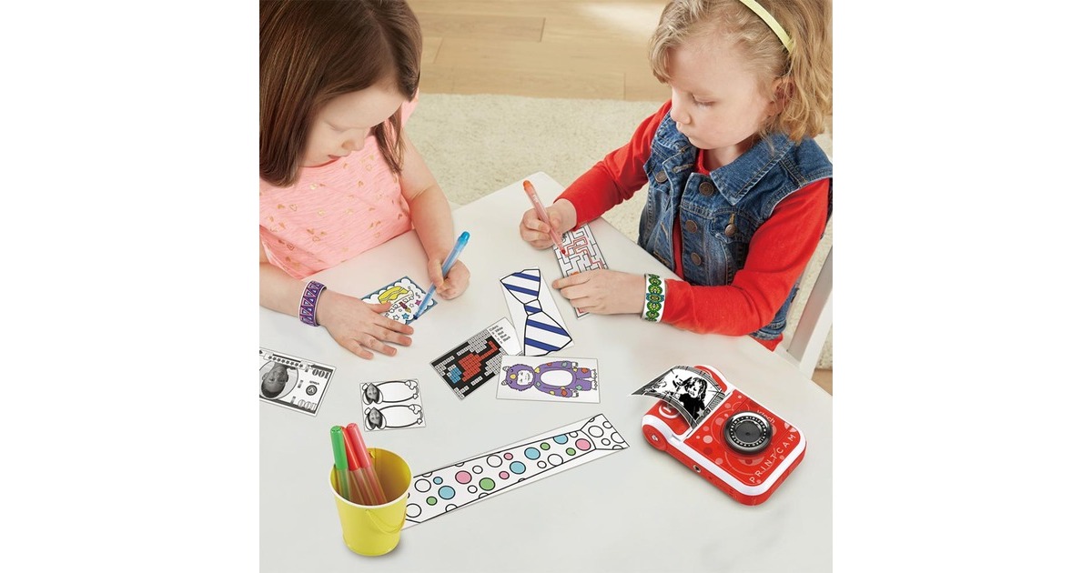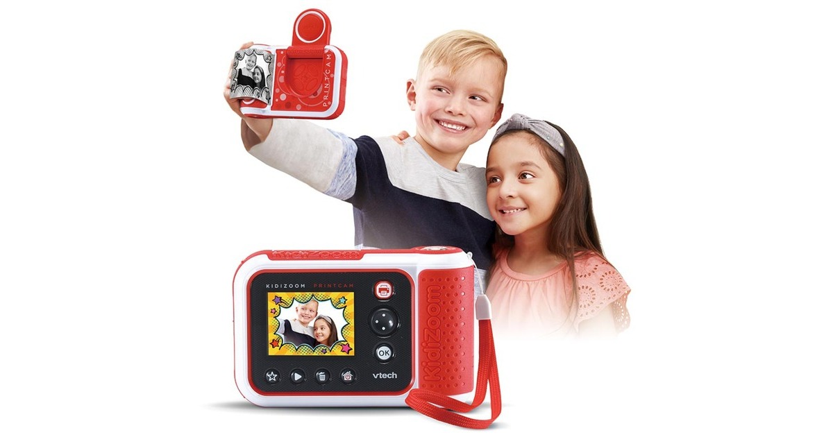Die VTech KidiZoom Print Cam ist eine robuste Kinderkamera mit eingebautem Thermodrucker. Darüber hinaus ist sie auch eine Foto- und Videokamera mit Selfie-Funktion und Gesichtserkennung. Sie verfügt über kindgerechte Bedienelemente und ein 6,1 cm (2,4") großes Display. Fotos, Spiele, Comics, Karten und vieles mehr lassen sich mit ihr im Handumdrehen ausdrucken. Dank der kinderfreundliche Foto- und Videobearbeitung können Bilder und Videos auch mit coolen Effekten, Rahmen sowie Stempeln versehen werden. Aufgenommene Fotos können ganz leicht in Ausmalbilder verwandelt und ausgedruckt werden. Mit den unzähligen Druckvorlagen für Spiele, Spielgeld, Accessoires etc. können Kinder ihrer Kreativität freien Lauf lassen!Art.-Nr.: 1764240