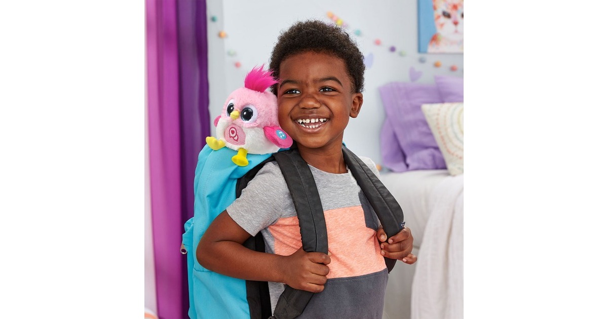 Der niedliche Lolibirds - Momo, ist ein einzigartiges Spielzeug, das auf die Schulter gesetzt werden kann und Gesagtes wiederholt. Mit seinem Magnet-Kissen kann Momo sich bequem auf der Schulter niederlassen und überallhin mitgenommen werden. Momo verfügt über einen tollen Stimmverzerreffekt, der Gesagtes mit lustigen Effekten wiedergibt. Das sorgt für jede Menge Spaß und Gelächter! Ein Bewegungssensor erkennt, wenn Momo „fliegt“, geschüttelt oder auf den Kopf gestellt wird und löst dann eine lustige Reaktion aus. Seine leuchtenden Augen spiegeln dabei Momos Gefühle wider. Darüber hinaus bietet Momo eine leuchtende Aufnahme-Taste am Bauch, mit der man bis zu 10 Sekunden lang seine Stimme, Gesang oder Geräusche aufnehmen kann. Die Musik-Taste am Flügel löst zudem tolle Melodien aus und sorgt für musikalische Unterhaltung.Art.-Nr.: 100037705